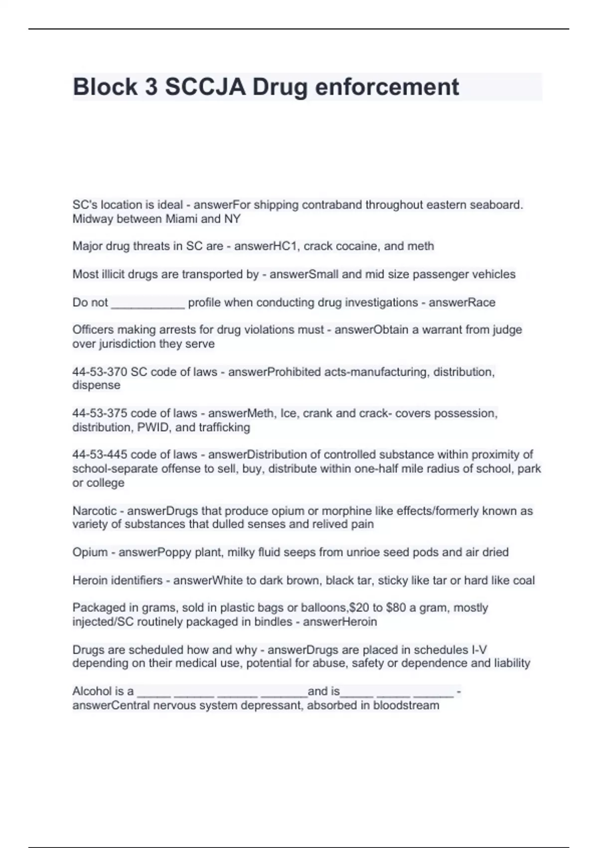 Block 3 SCCJA Drug enforcement Questions and Answers 100% Accurate