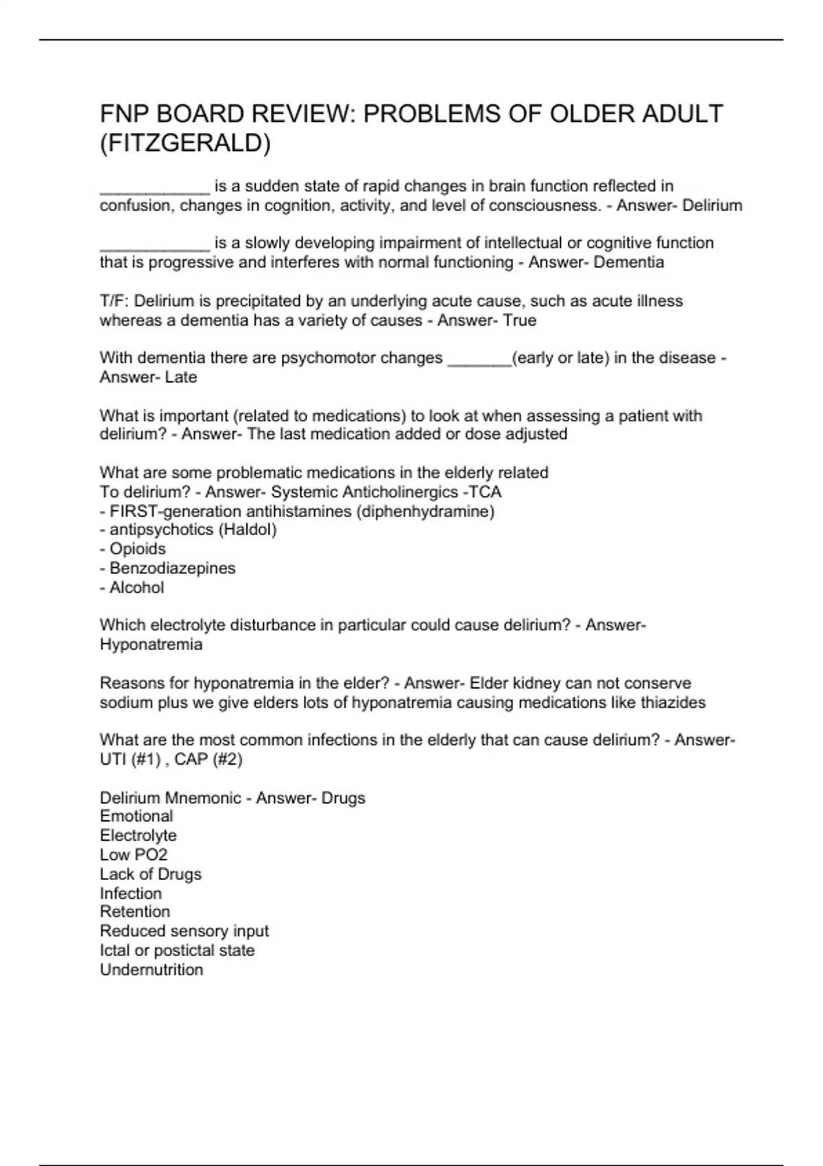 FNP BOARD REVIEW: PROBLEMS OF OLDER ADULT (FITZGERALD)