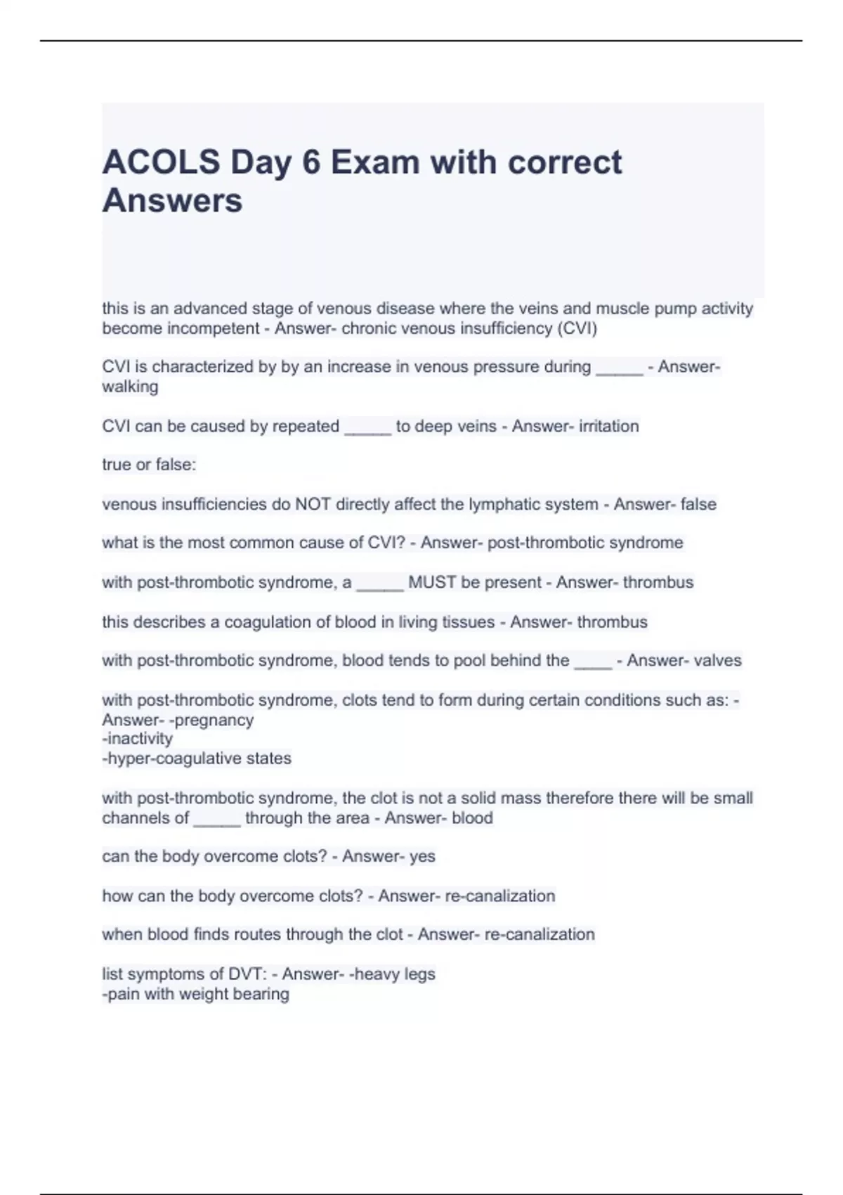 ACOLS Day 6 Exam with correct Answers