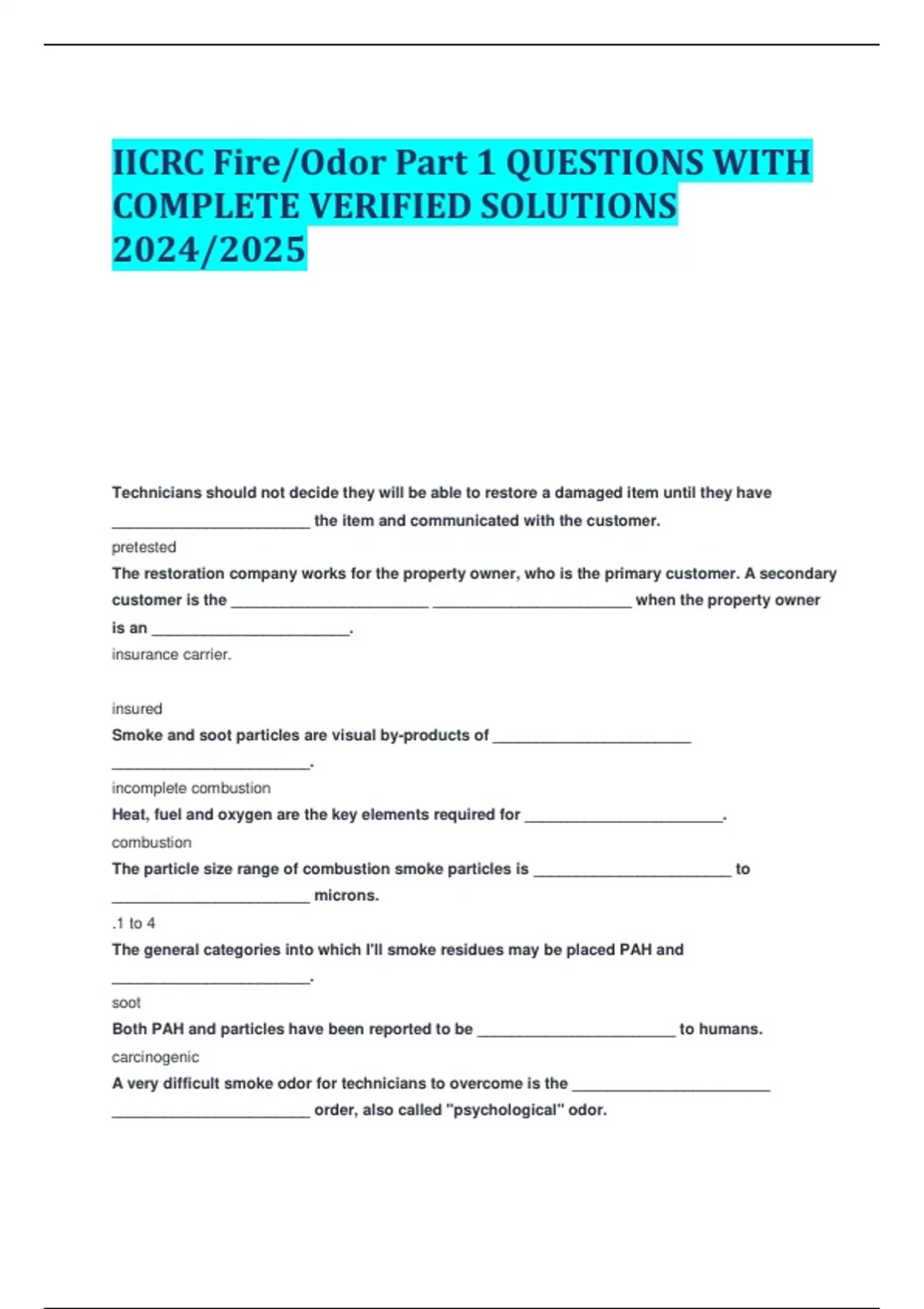 IICRC Fire/Odor Part 1 QUESTIONS WITH COMPLETE VERIFIED SOLUTIONS 2024/2025