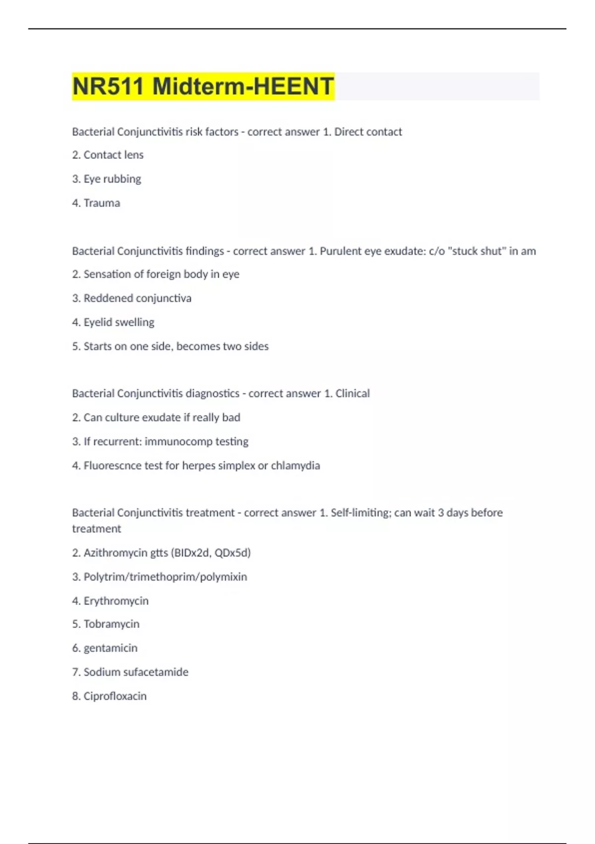 Test Bank For NR11 Differential Diagnosis and Primary Care -HEENT (multiple choice )