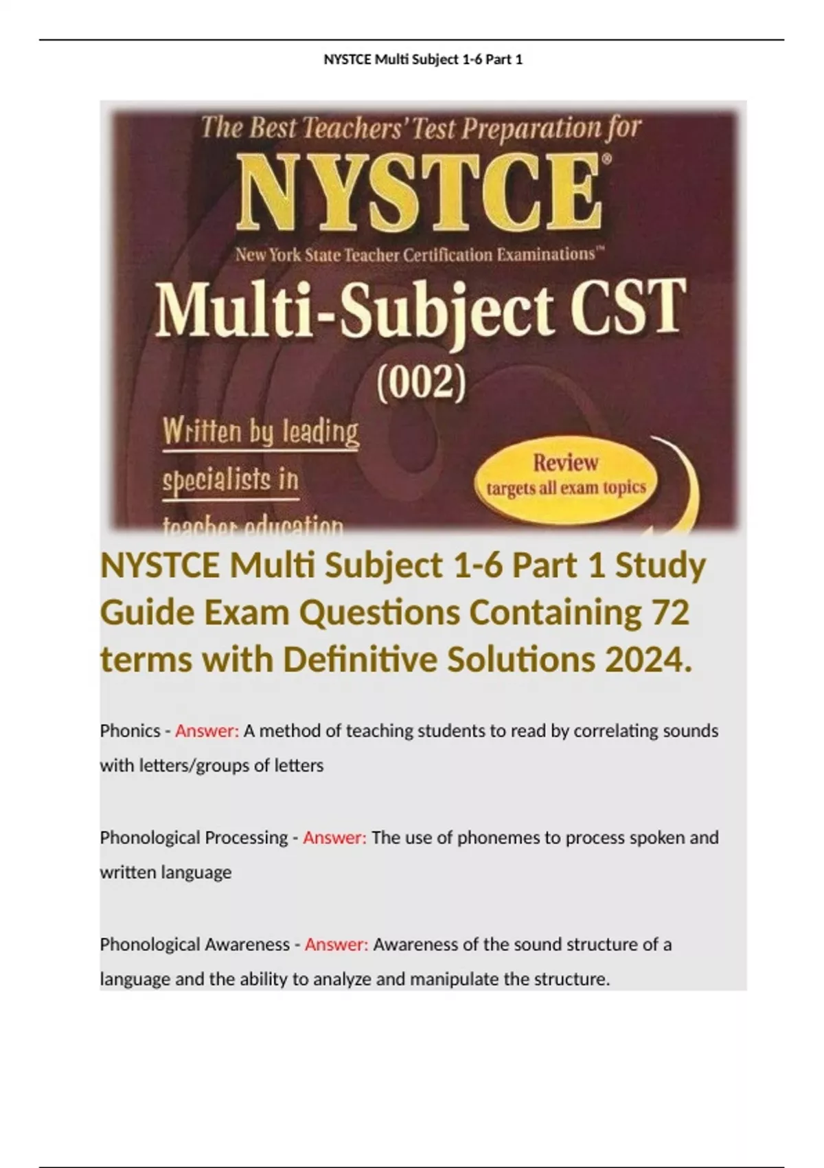 - NYSTCE Multi Subject 1-6 Part 1 Study Gide Exm Q