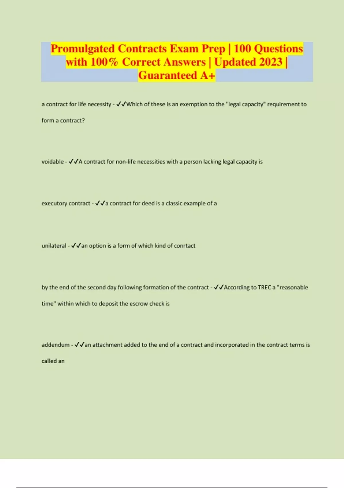 Promulgated Contracts Exam Prep | 100 Questions with 100% Correct Answers | Updated 2023 | Guaranteed A+