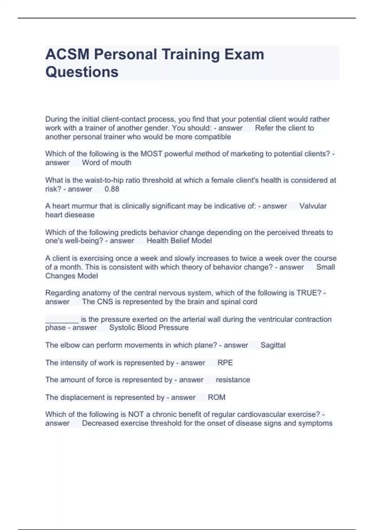 ACSM Personal Training Exam Questions and Answers 100% Accurate 2024