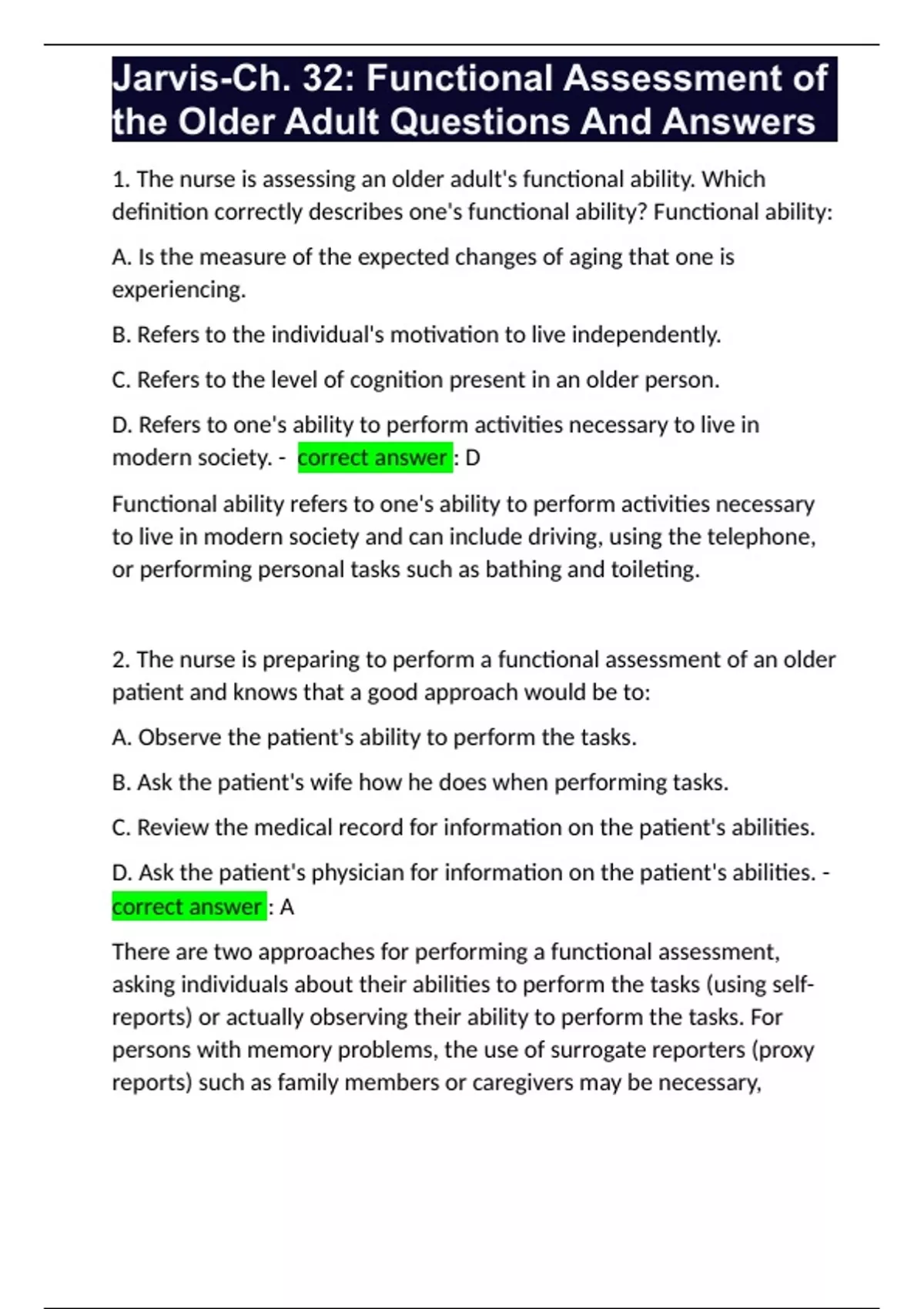 Jarvis-Ch. 32: Functional Assessment of the Older Adult Questions And Answers