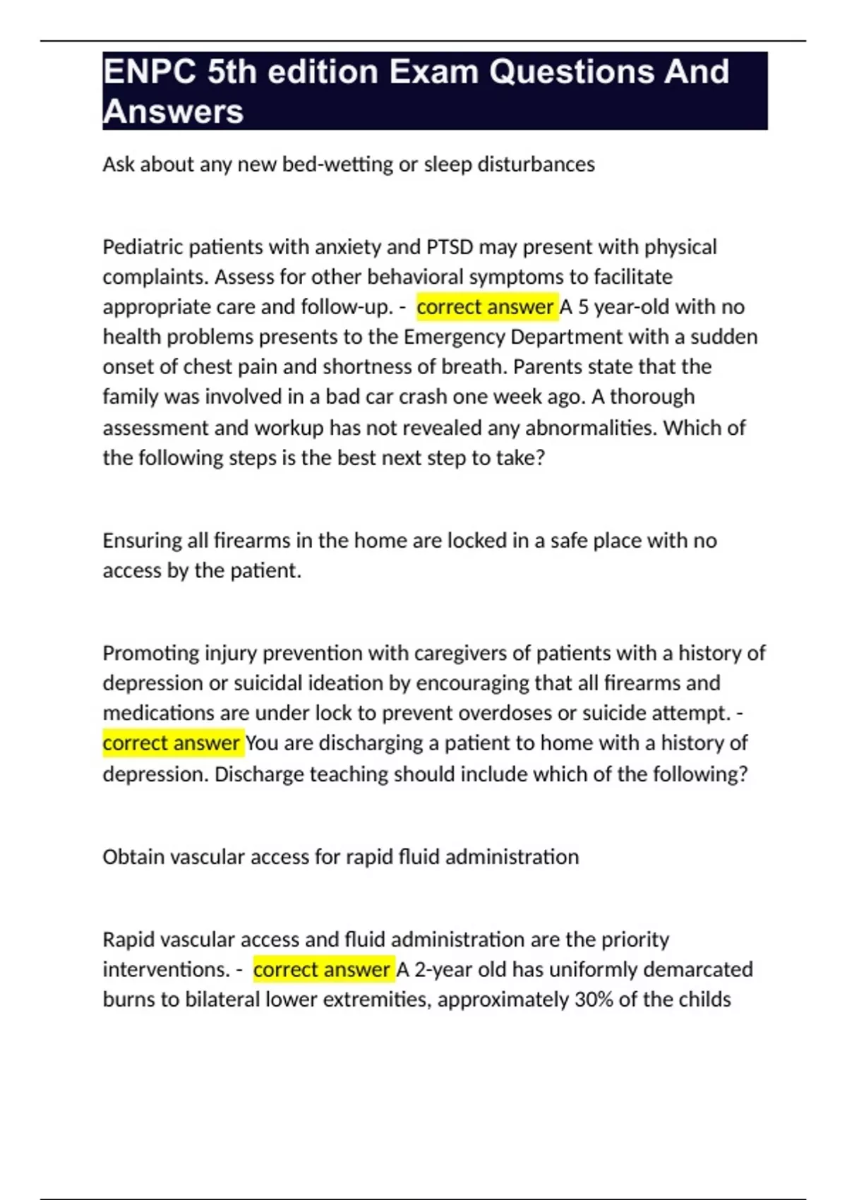 ENPC 5th edition Exam Questions And Answers