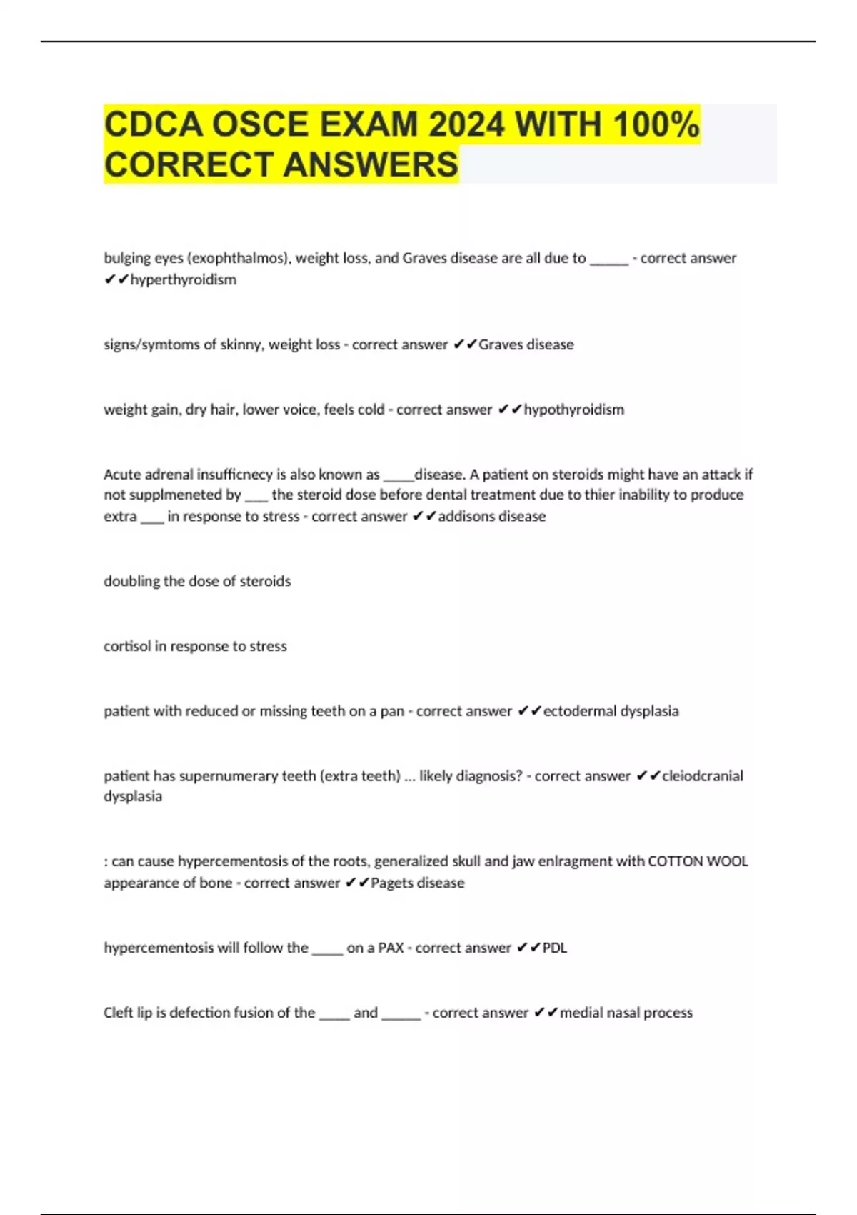CDCA OSCE EXAM 2024 WITH 100% CORRECT ANSWERS