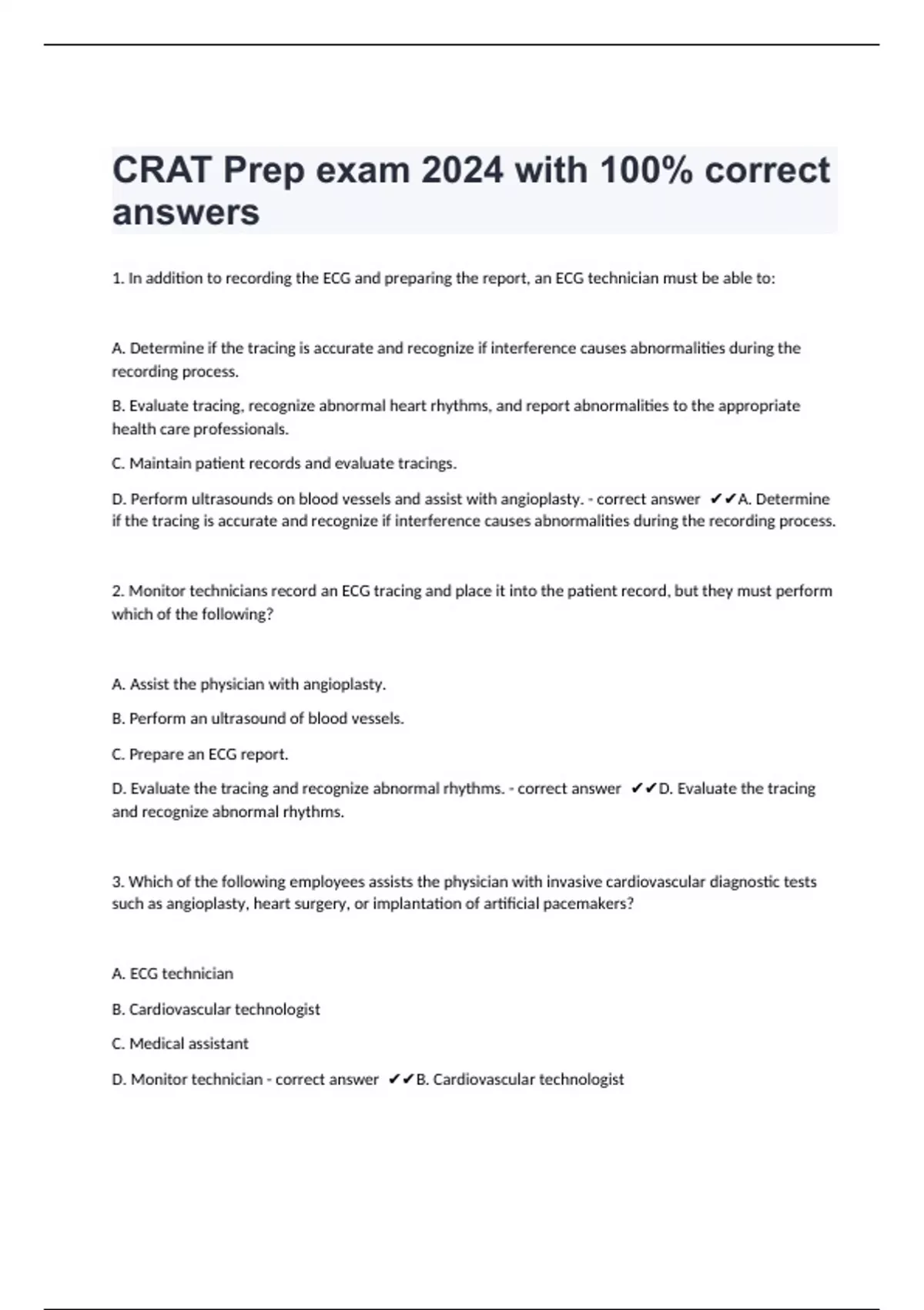 CRAT Prep exam 2024 with 100% correct answers