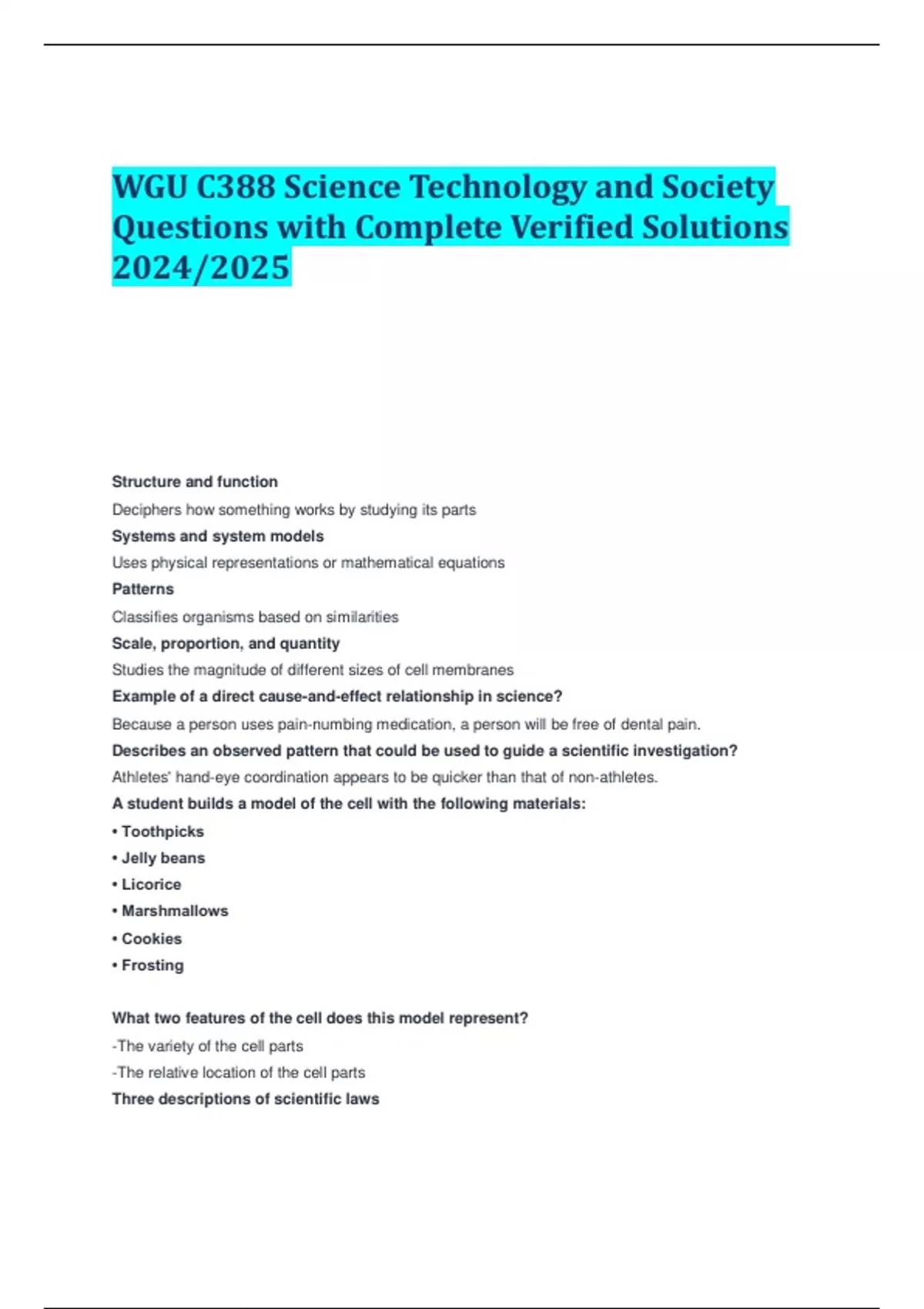 WGU C388 Science Technology and Society Questions with Complete Verified Solutions 2024/2025