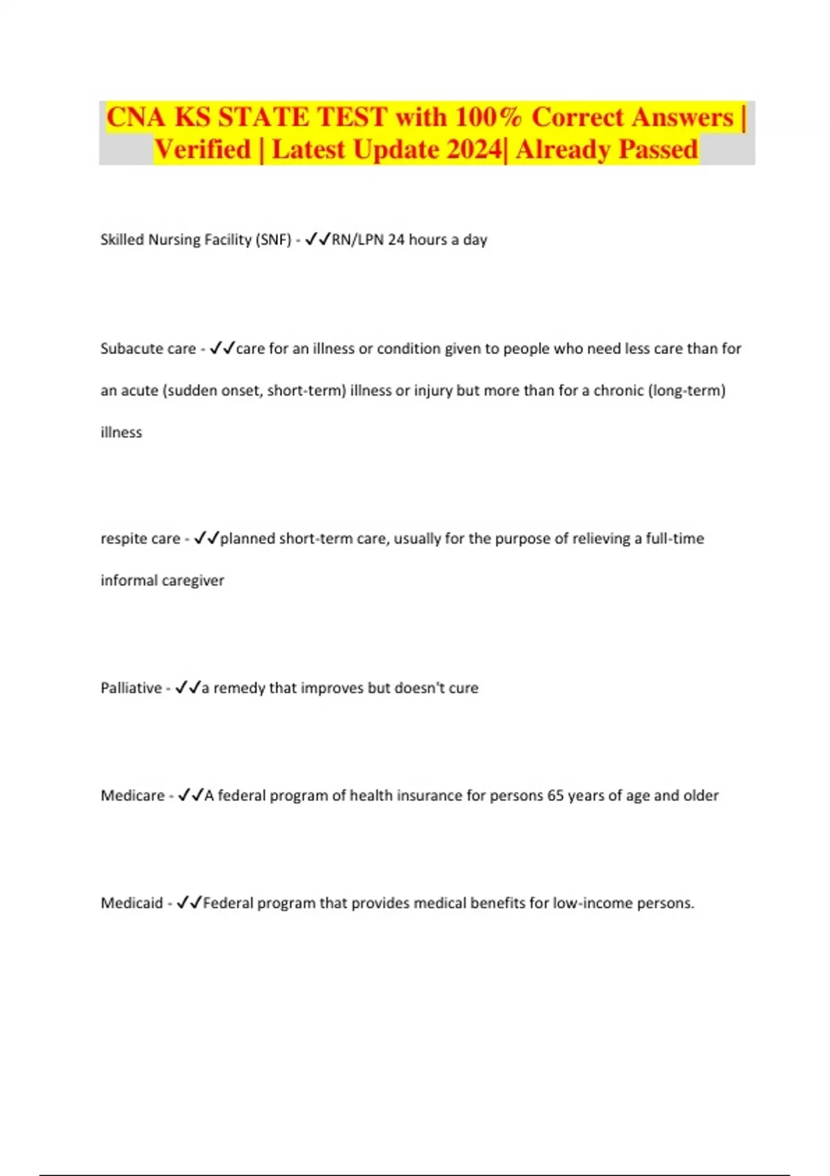 CNA KS STATE TEST with 100% Correct Answers | Verified | Latest Update 2024| Already Passed