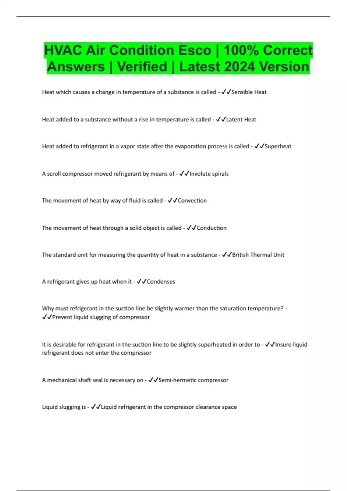 HVAC Air Condition Esco | 100% Correct Answers | Verified | Latest 2024 Version