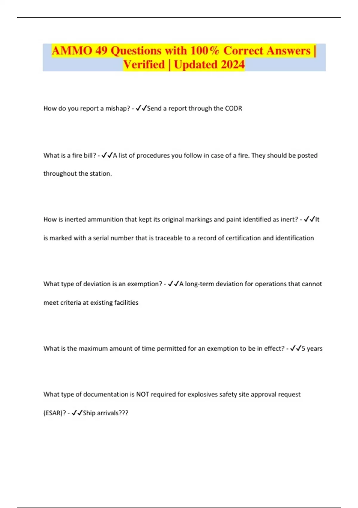 AMMO 49 Questions with 100% Correct Answers | Verified | Updated 2024