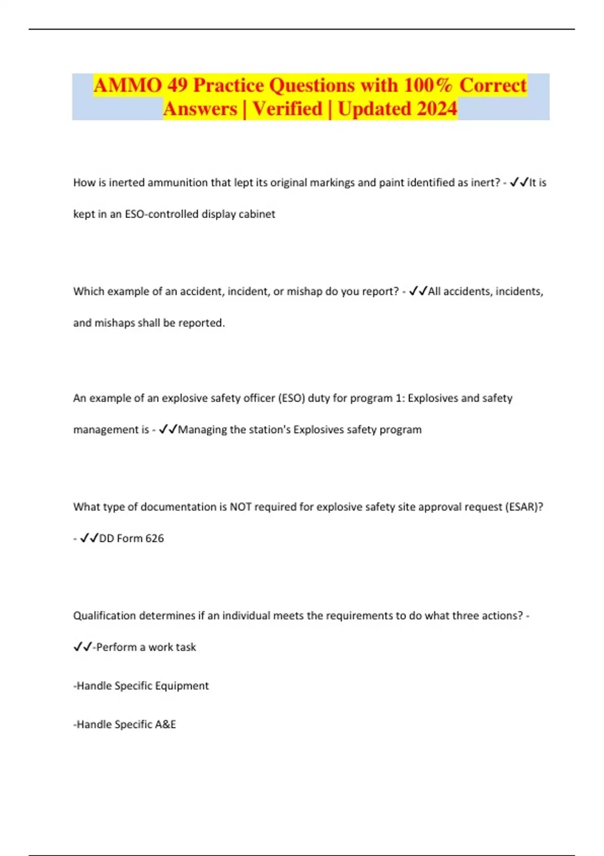 AMMO 49 Practice Questions with 100% Correct Answers | Verified | Updated 2024