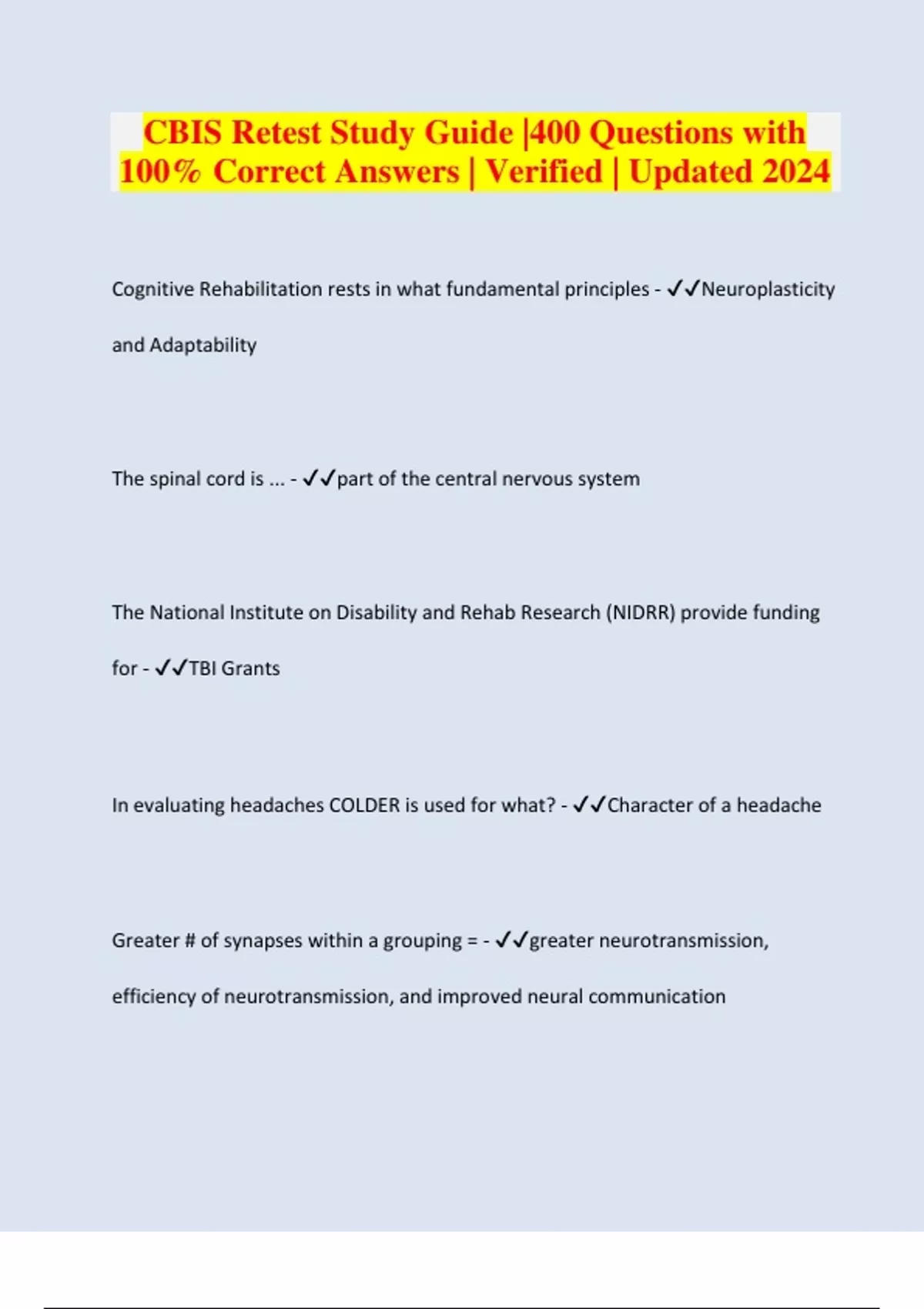 CBIS Retest Study Guide |400 Questions with 100% Correct Answers | Verified | Updated 2024