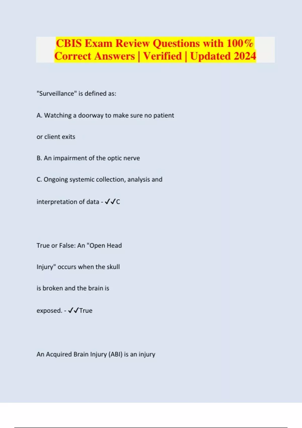 CBIS Exam Review Questions with 100% Correct Answers | Verified | Updated 2024