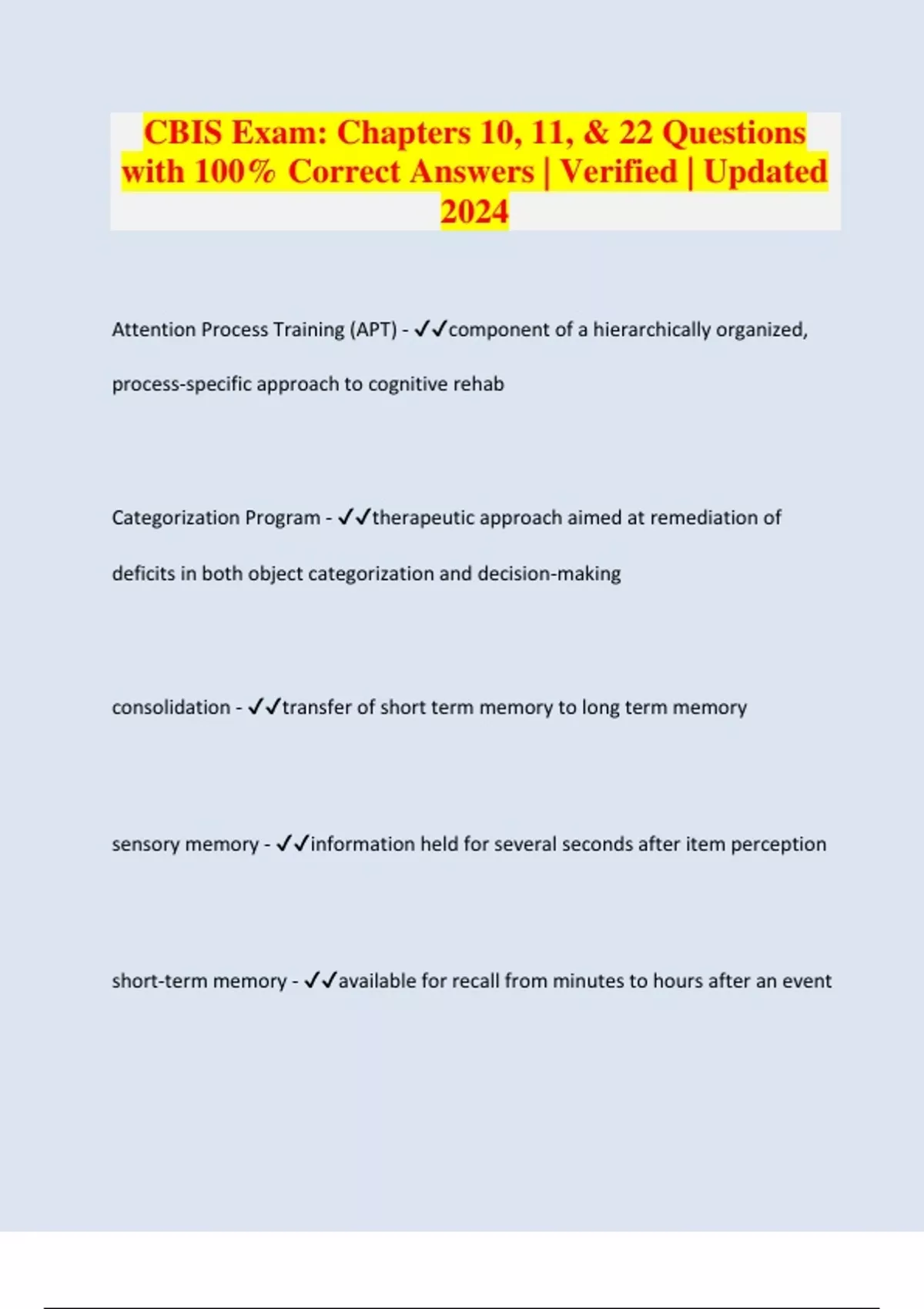 CBIS Exam: Chapters 10, 11, & 22 Questions with 100% Correct Answers | Verified | Updated 2024