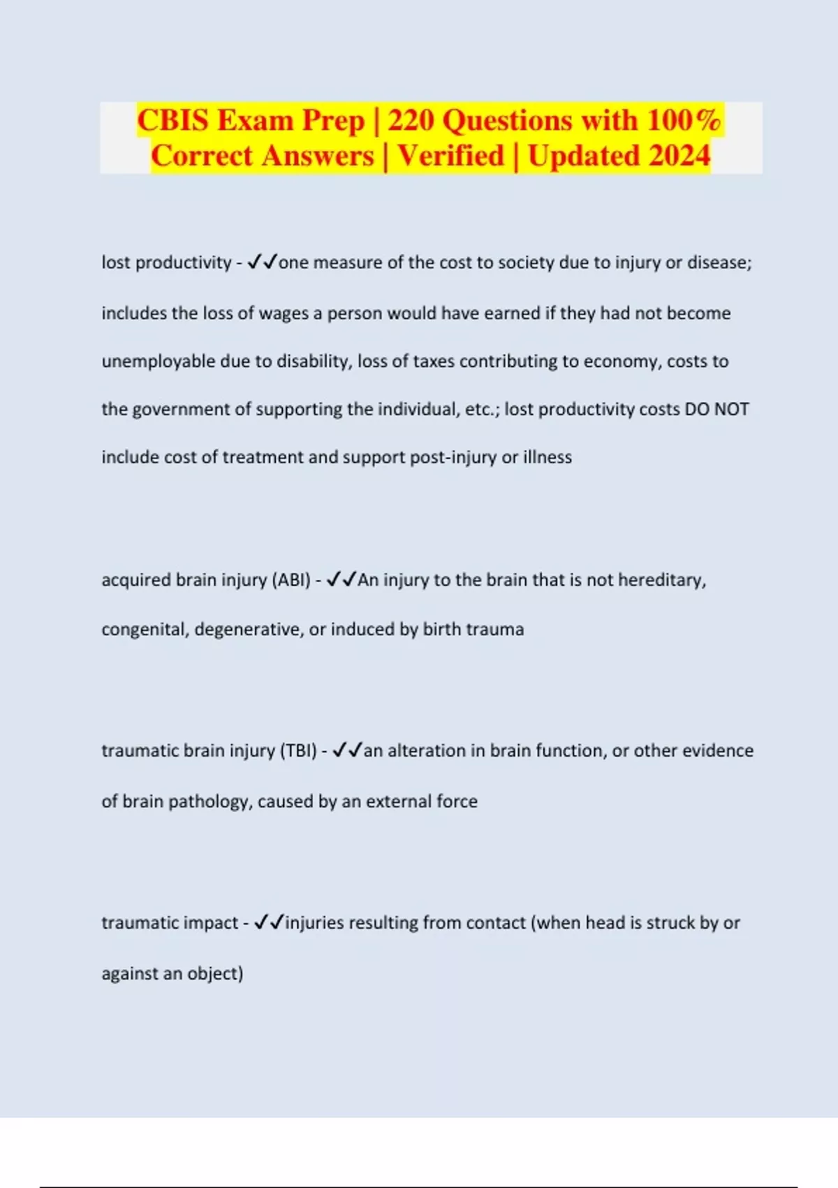 CBIS Exam Prep | 220 Questions with 100% Correct Answers | Verified | Updated 2024