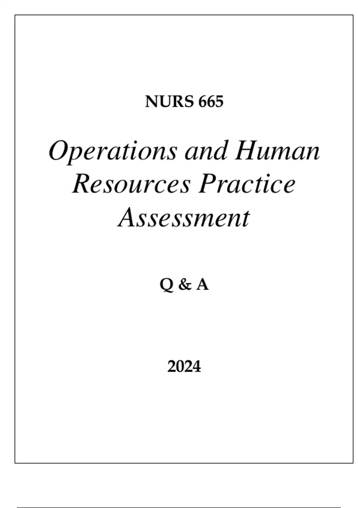 NURS 665 OPERATIONS AND HUMAN RESOURCES PRACTICE ASSESSMENT Q & A 2024.