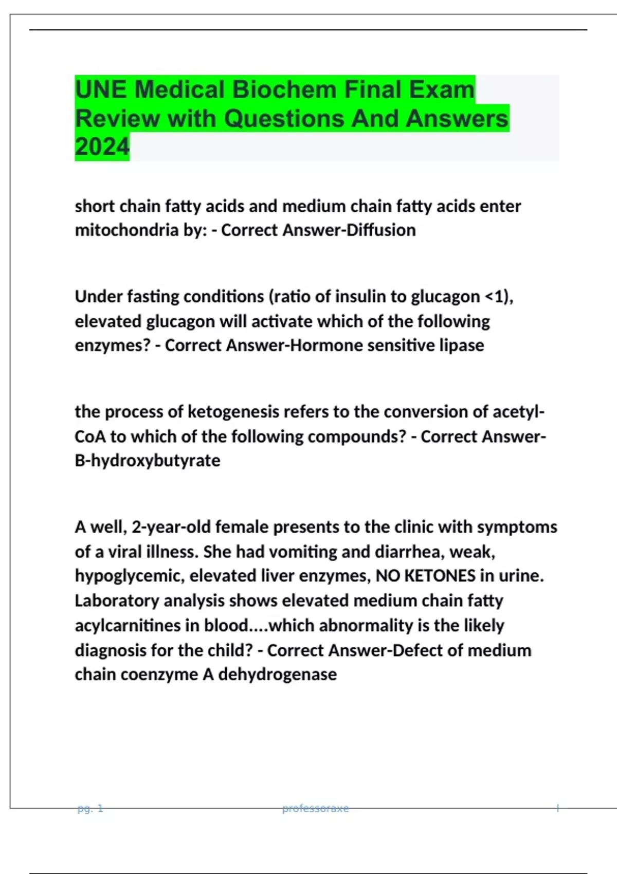 UNE Medical Biochem Final Exam Review with Questions And Answers 2024