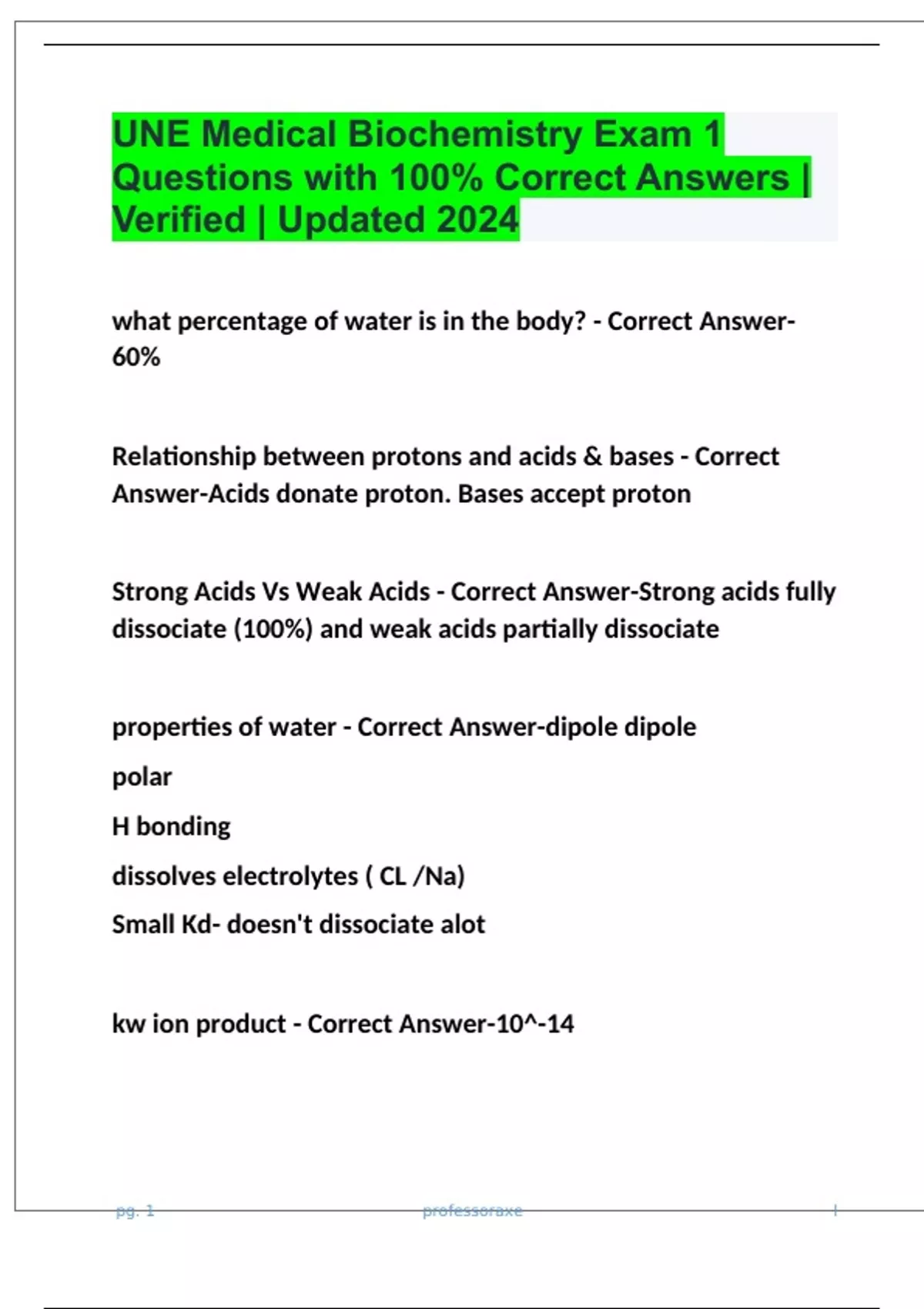 UNE Medical Biochemistry Exam 1 Questions with 100% Correct Answers | Verified | Updated 2024