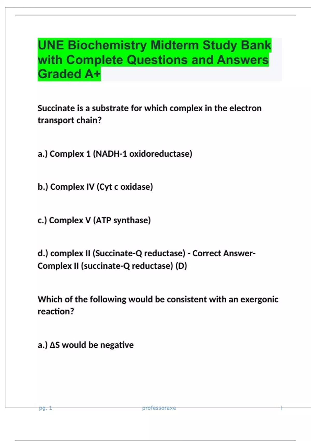 UNE Biochemistry Midterm Study Bank with Complete Questions and Answers Graded A+