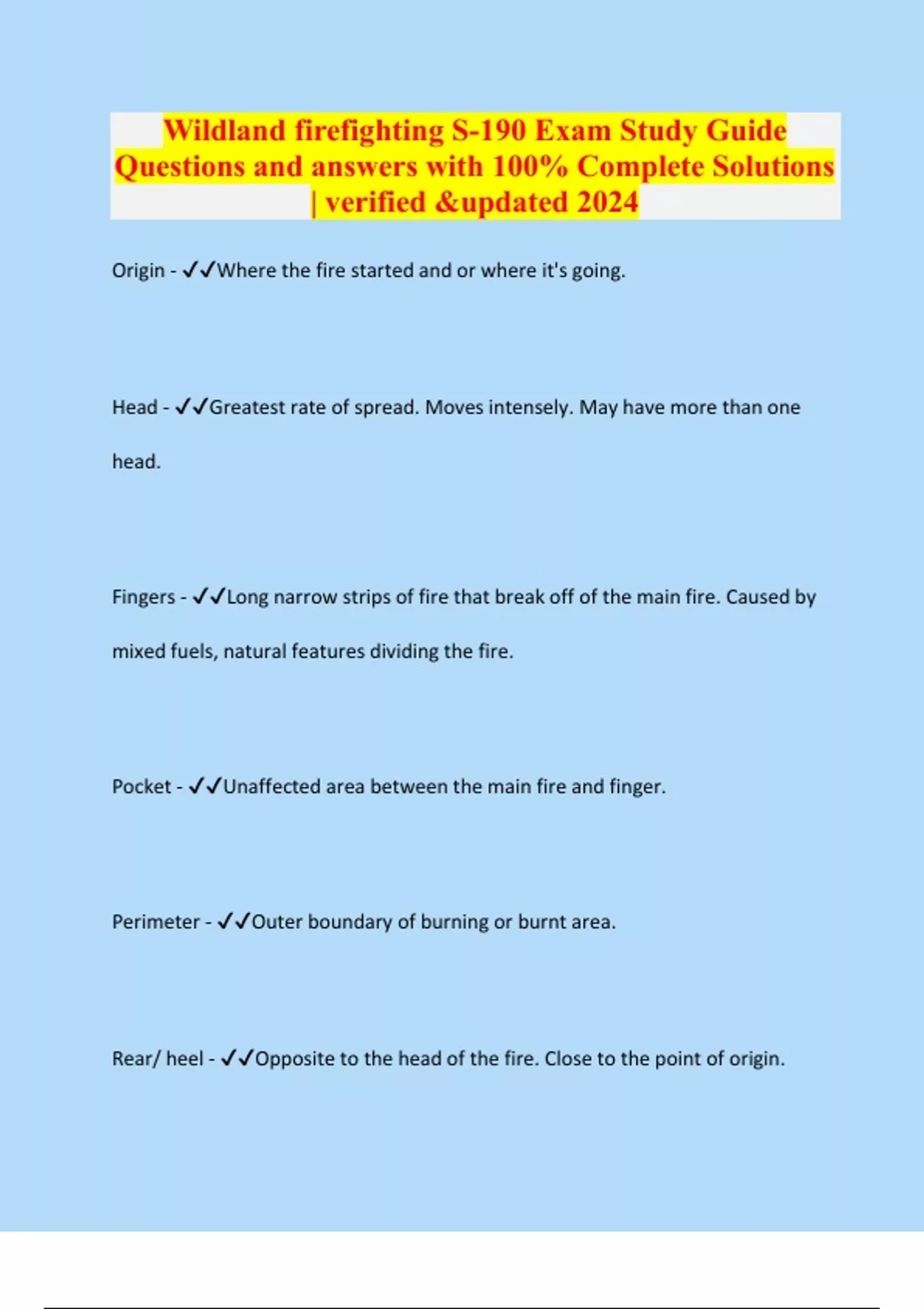Wildland firefighting S-190 Exam Study Guide Questions and answers with 100% Complete Solutions | verified &updated 2024