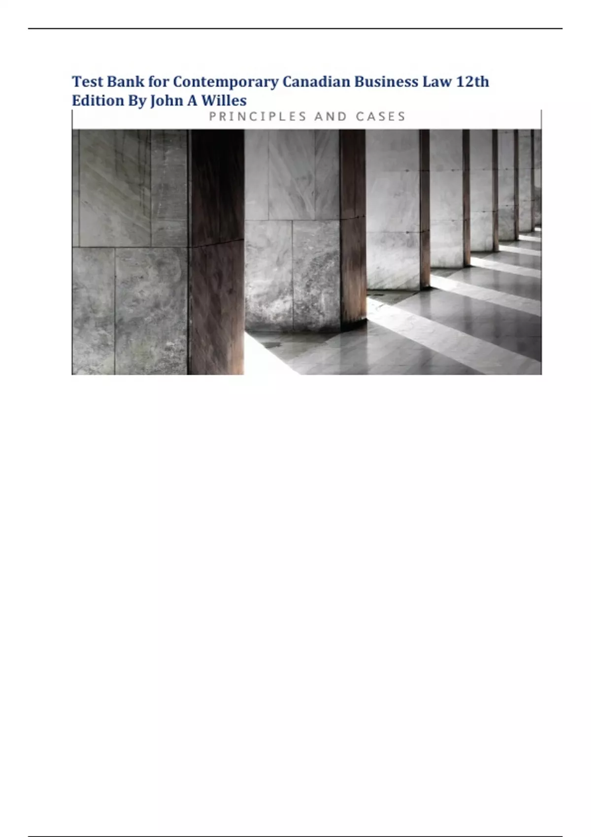 Test Bank for ContemporaTest Bank for Contemporary Canadian Business Law 12th Edition By John A Willesry Canadian Business Law 12th Edition By John A Wille