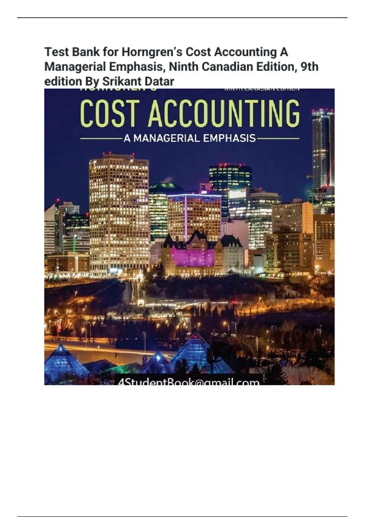 Test Bank for Horngren’s Cost Accounting A Managerial Emphasis, Ninth Canadian Edition, 9th edition By Srikant Datar