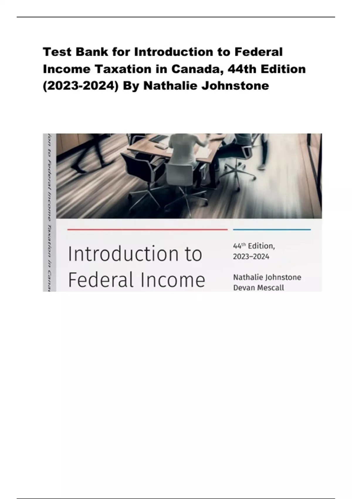 Test Bank for Introduction to Federal Income Taxation in Canada, 44th Edition () By Nathalie Johnston