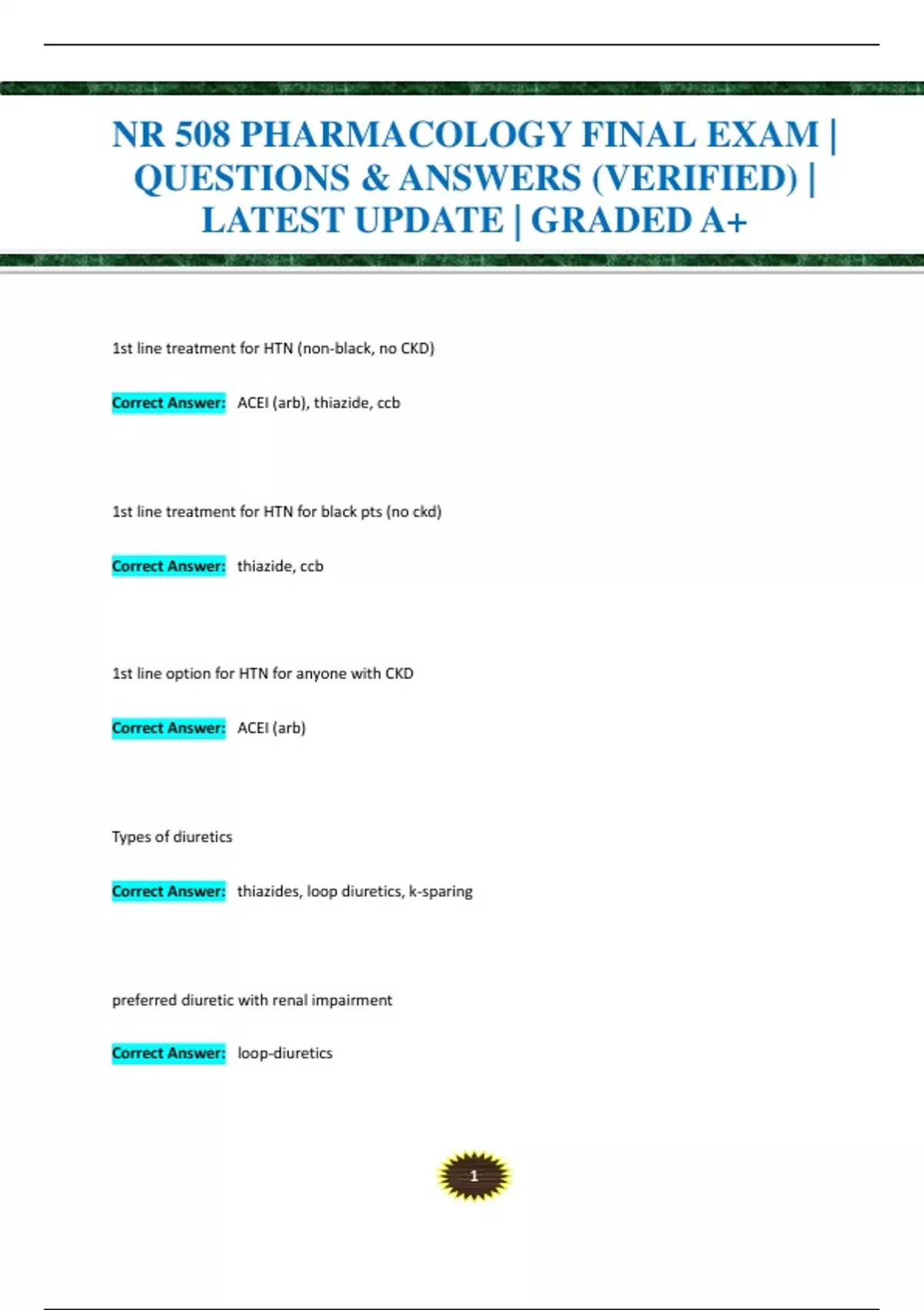 NR 508 PHARMACOLOGY FINAL EXAM | QUESTIONS & ANSWERS (VERIFIED) | LATEST UPDATE | GRADED A+NR 508 PHARMACOLOGY FINAL EXAM | QUESTIONS & ANSWERS (VERIFIED) | LATEST UPDATE | GRADED A+NR 508 PHARMACOLOGY FINAL EXAM | QUESTIONS & ANSWERS (VERIFIED) | LATEST UPDATE | GRADED A+