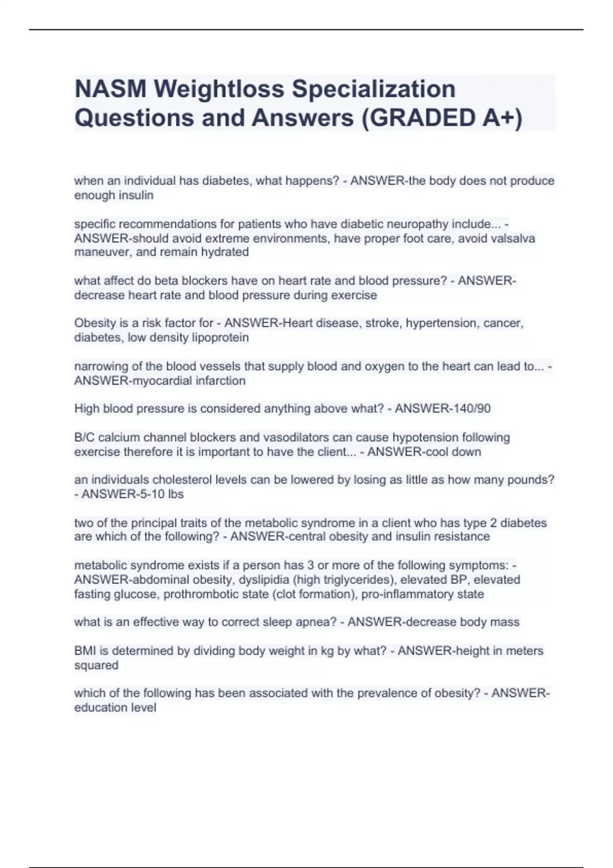 NASM Weightloss Specialization Questions and Answers (GRADED A+)