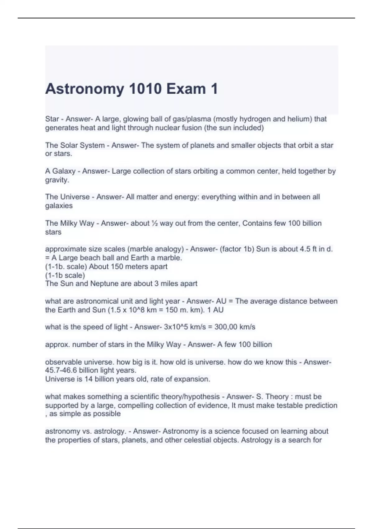Astronomy 1010 Exam 1 Questions and Answers / Graded A