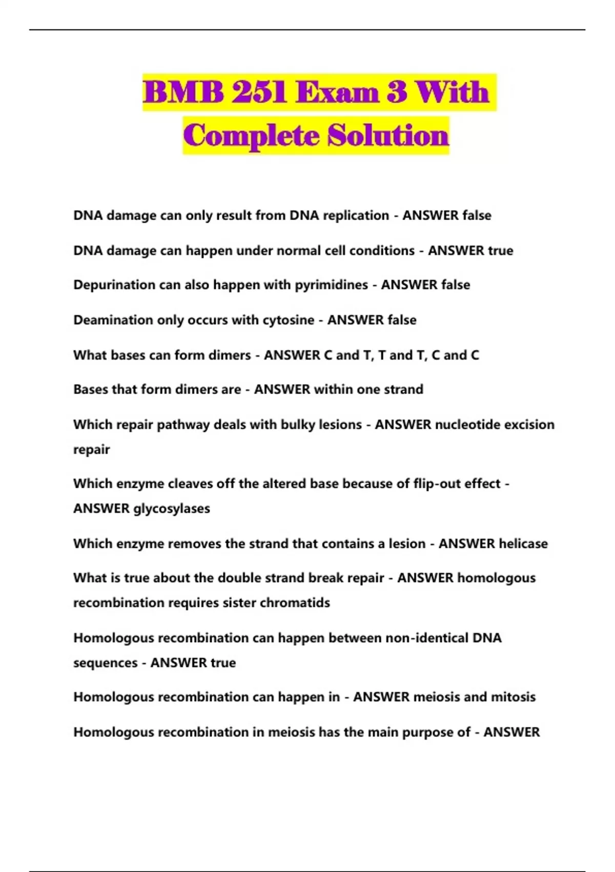 BMB 251 BUNDLED EXAMS WITH SOLUTION
