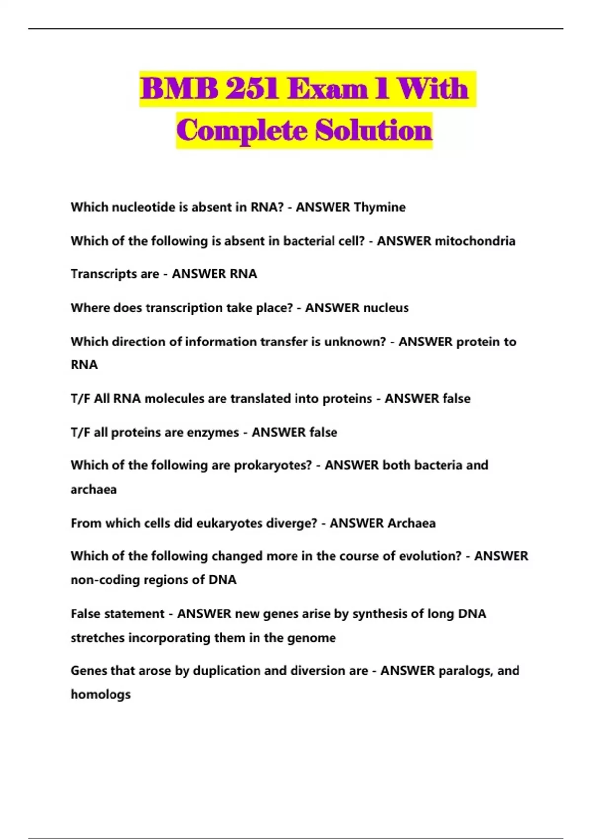 BMB 251 BUNDLED EXAMS WITH SOLUTION