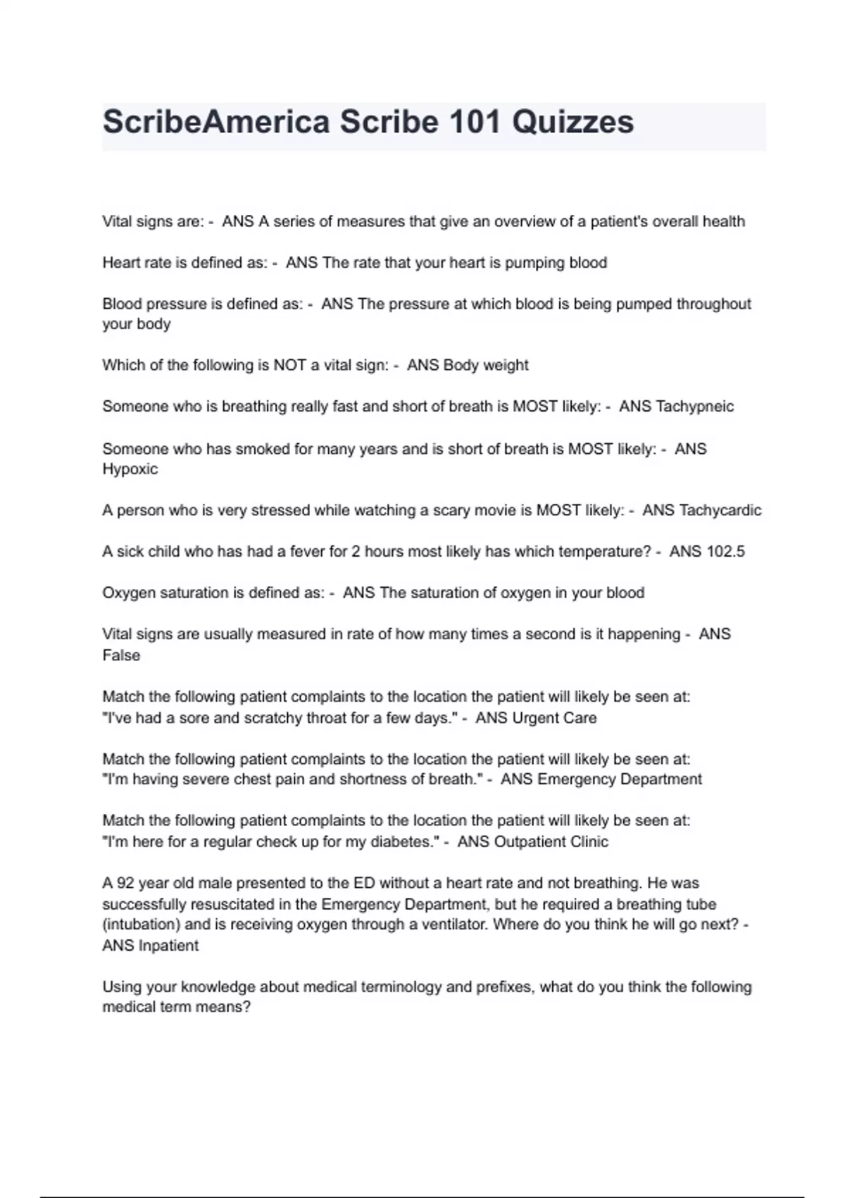 ScribeAmerica Scribe 101 Quizzes Questions & Answers 2024 ( A+ GRADED 100% VERIFIED)