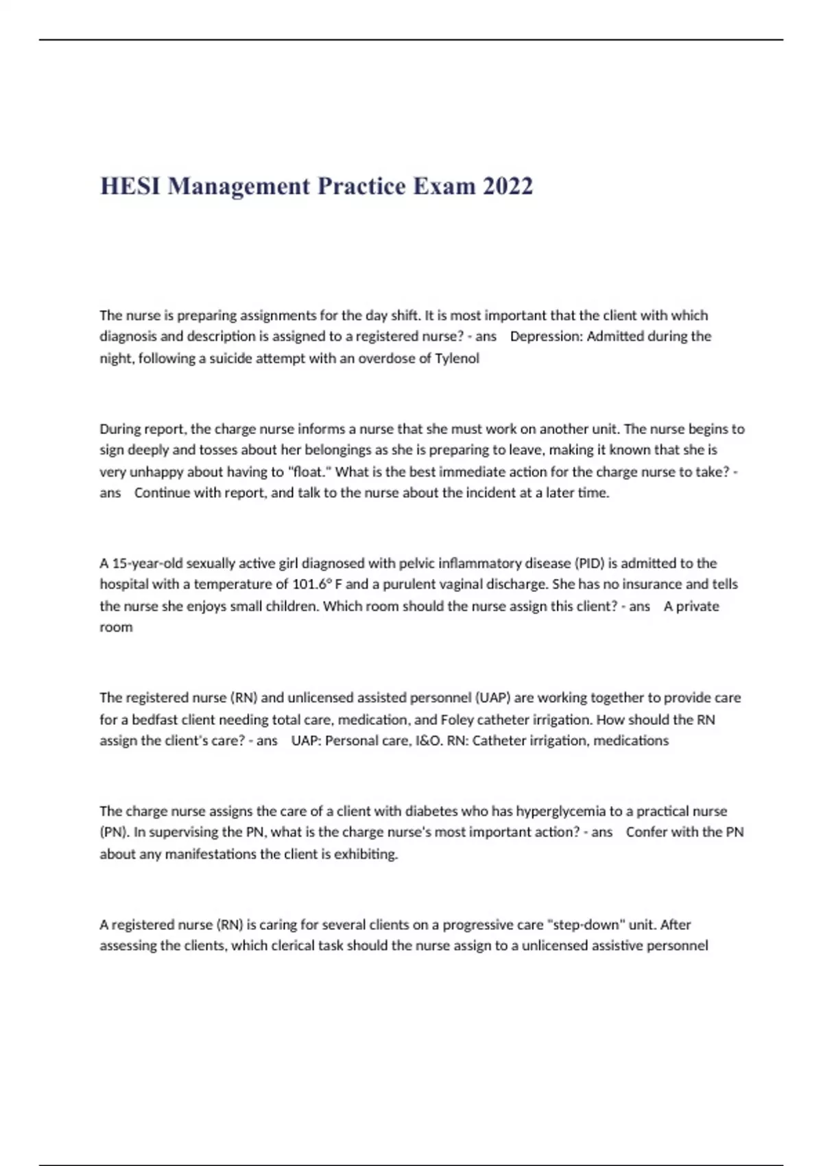 HESI Management Practice Exam 2022