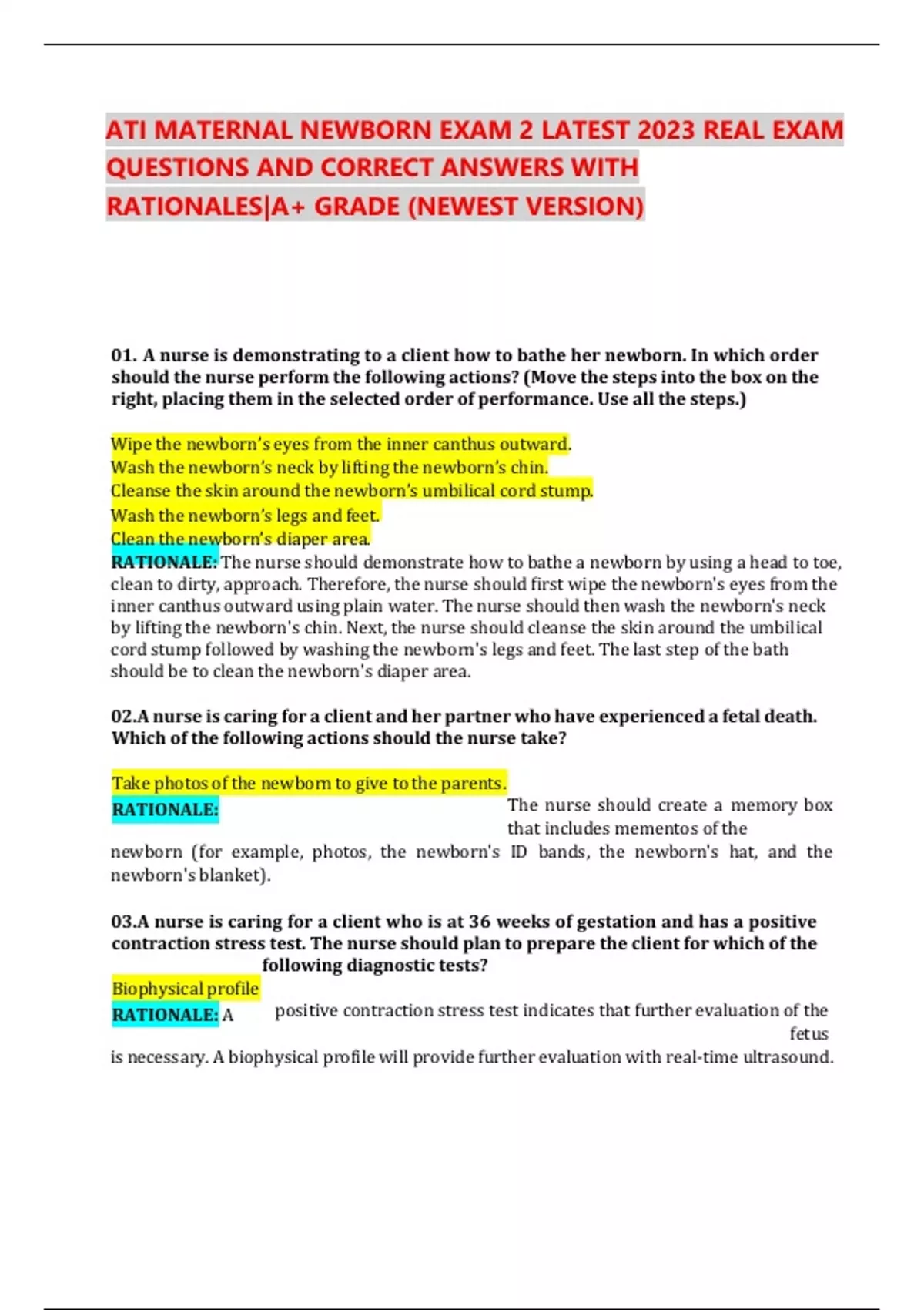 ATI MATERNAL NEWBORN EXAM 2 LATEST 2023 REAL EXAM QUESTIONS AND CORRECT ANSWERS WITH RATIONALES|A+ GRADE (NEWEST VERSION)