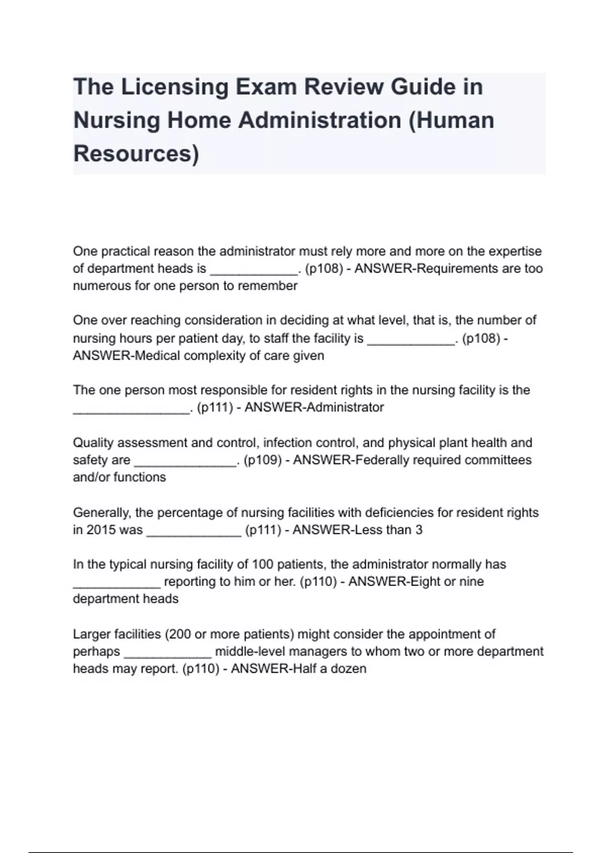 The Licensing Exam Review Guide in Nursing Home Administration (Human Resources)