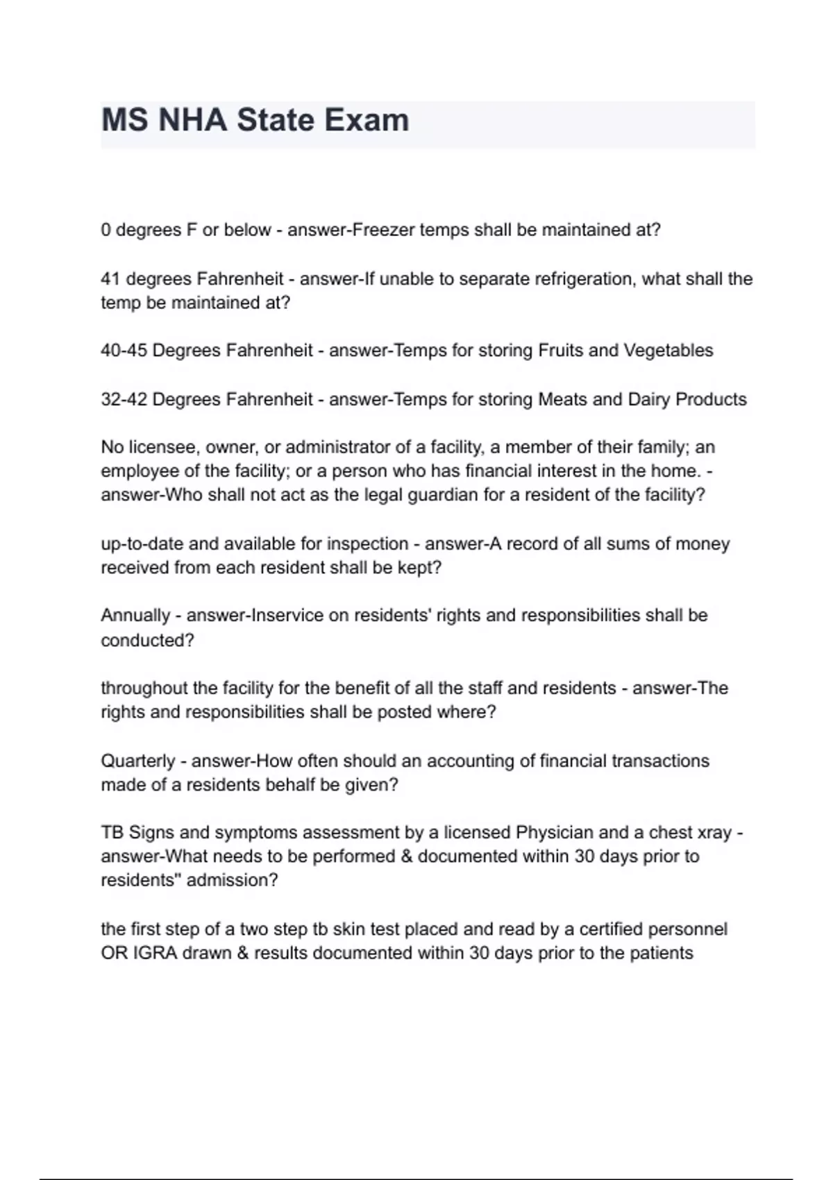 MS NHA State Exam questions with 100% correct answers