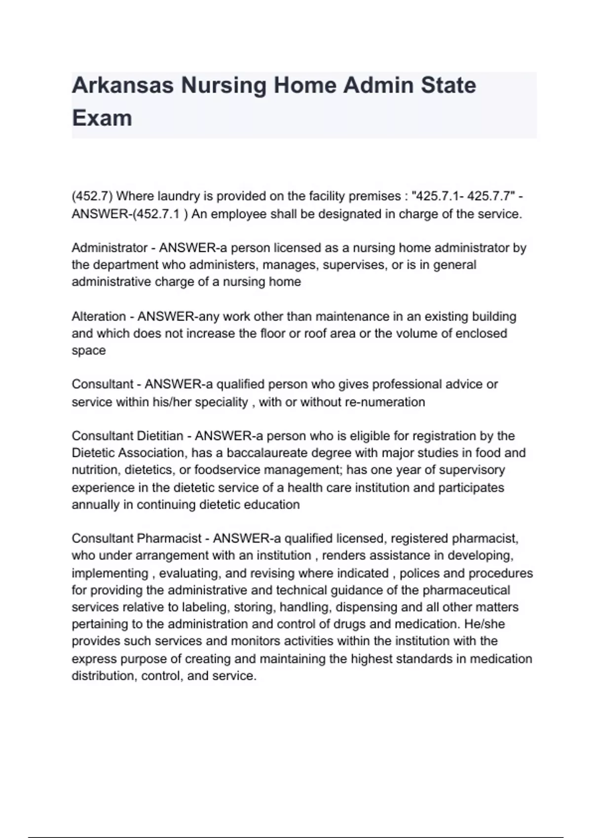 Arkansas Nursing Home Admin State Exam