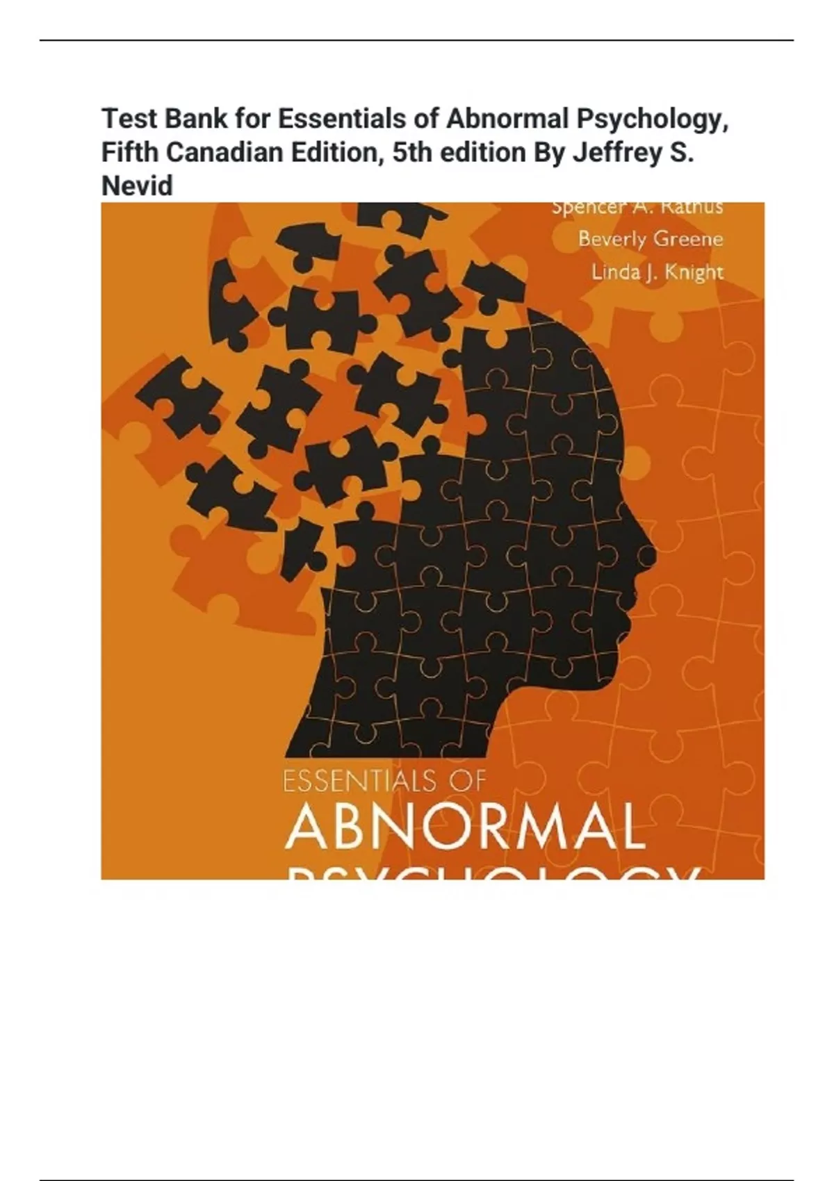 Test Bank for Essentials of Abnormal Psychology, Fifth Canadian Edition, 5th edition By Jeffrey S. Nevi