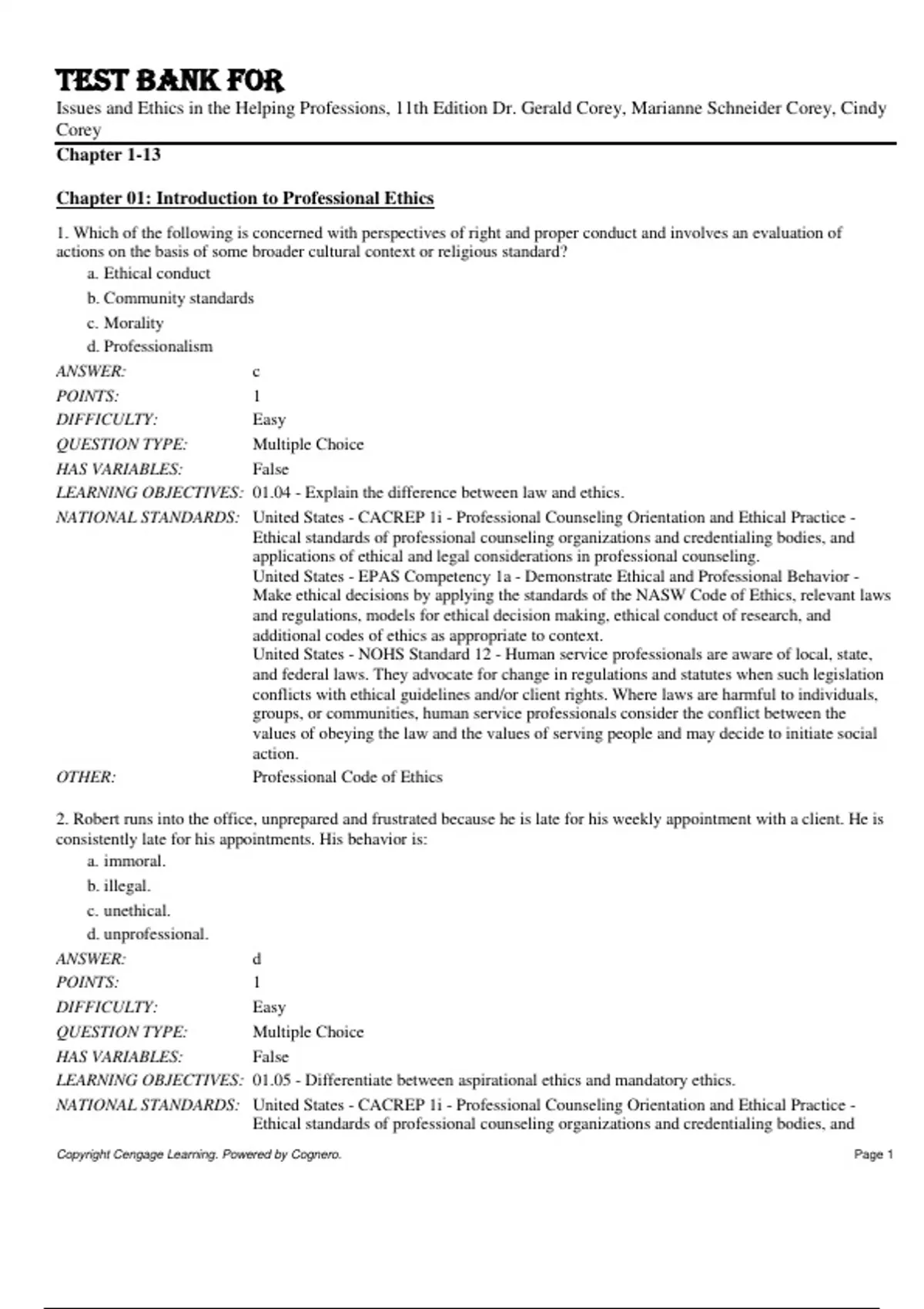 Test Bank For Issues and Ethics in the Helping Professions, 11th Edition by Dr. Gerald Corey, Marianne Schneider Corey, Cindy Corey Chapter 1-13