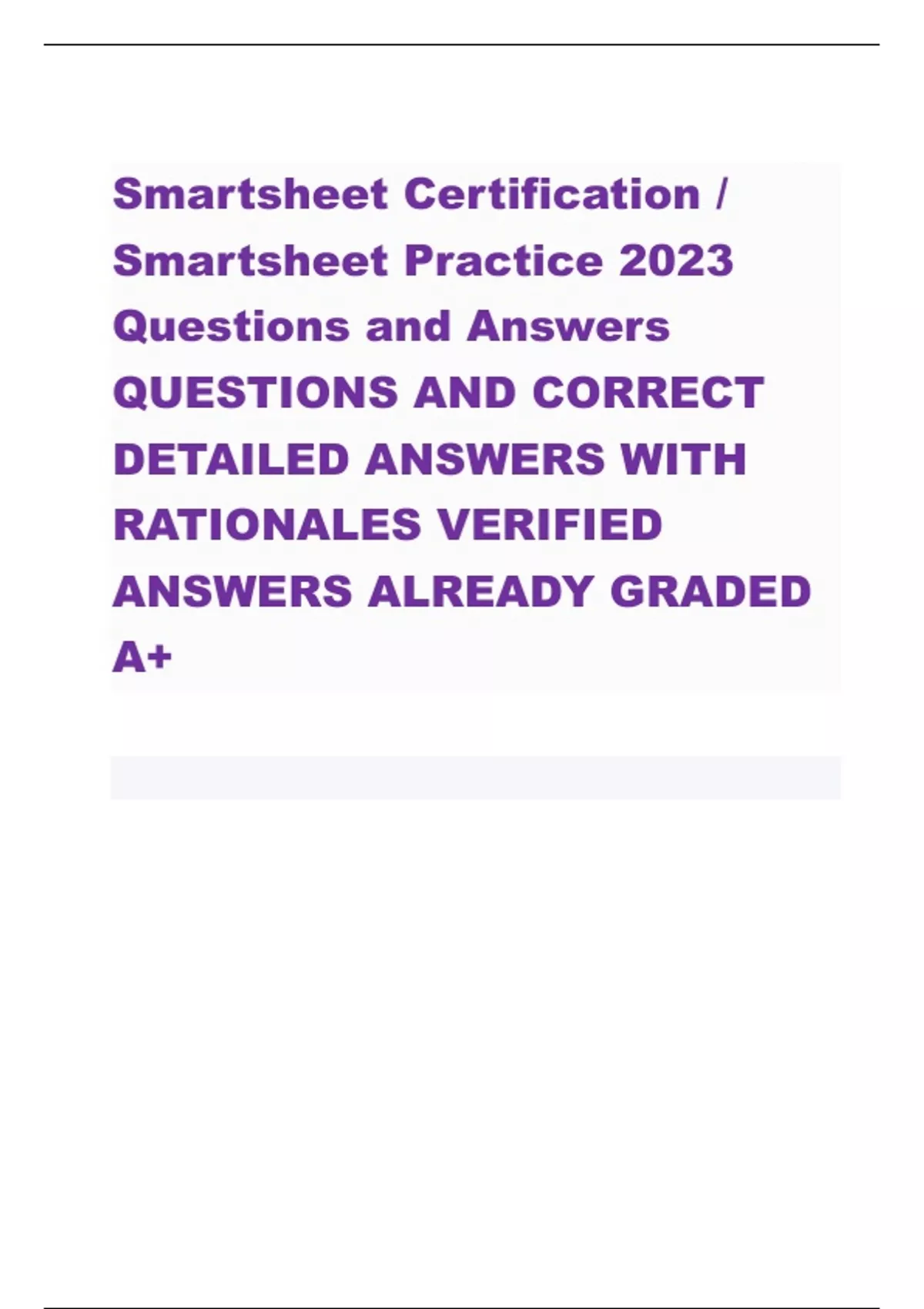 Smartsheet Certification / Smartsheet Practice 2023 Questions and Answers QUESTIONS AND CORRECT DETAILED ANSWERS WITH RATIONALES VERIFIED ANSWERS ALREADY GRADED A+