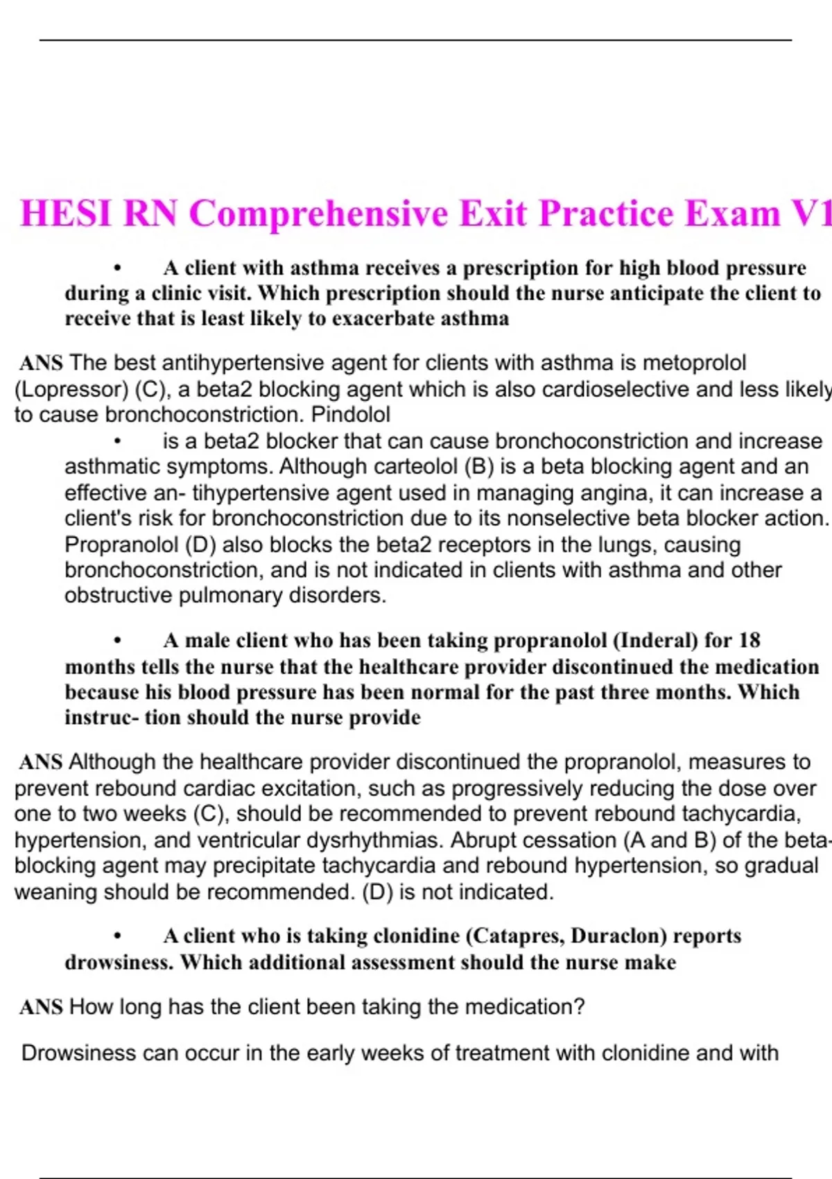 HESI RN Exit Comprehensive V1 Exam Practice Questions and Answers|100% Verified