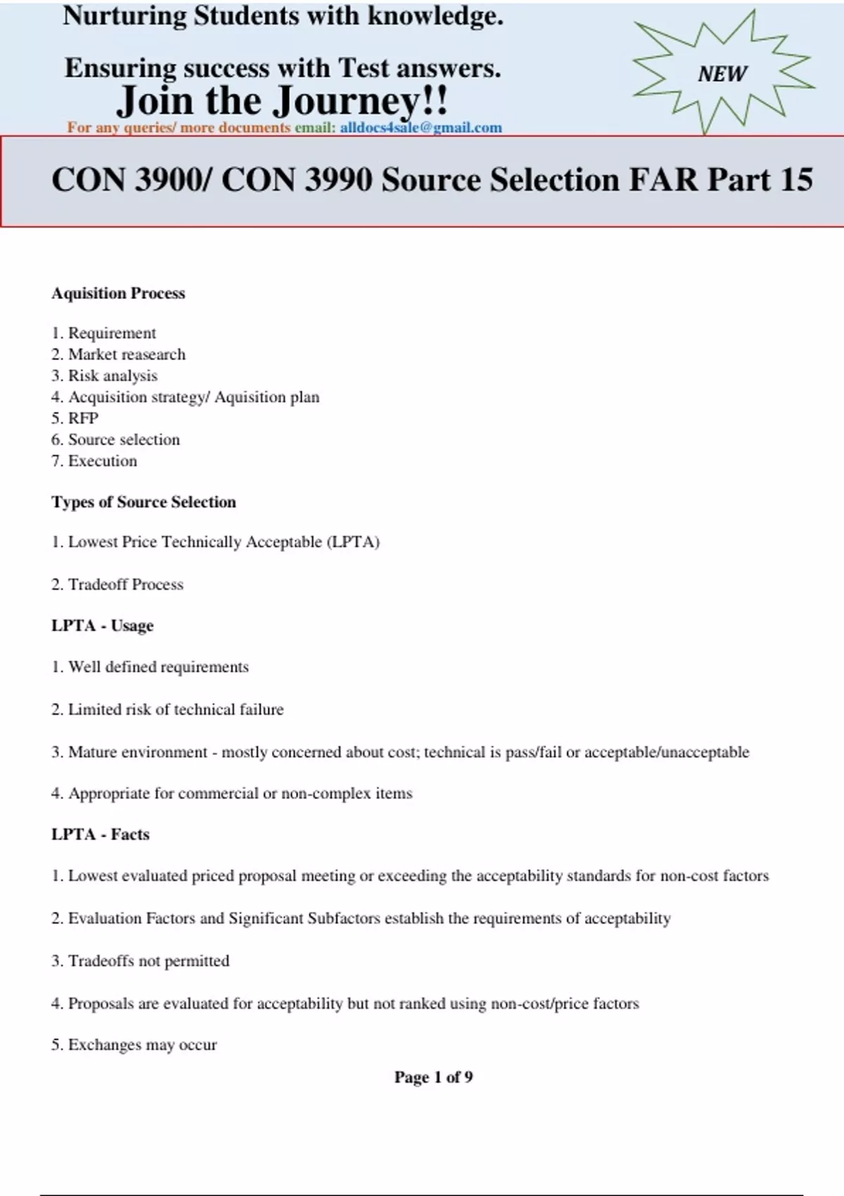 CON 3900/ CON 3990 Source Selection FAR Part 15 Questions & Answers: Guaranteed A+ Guide