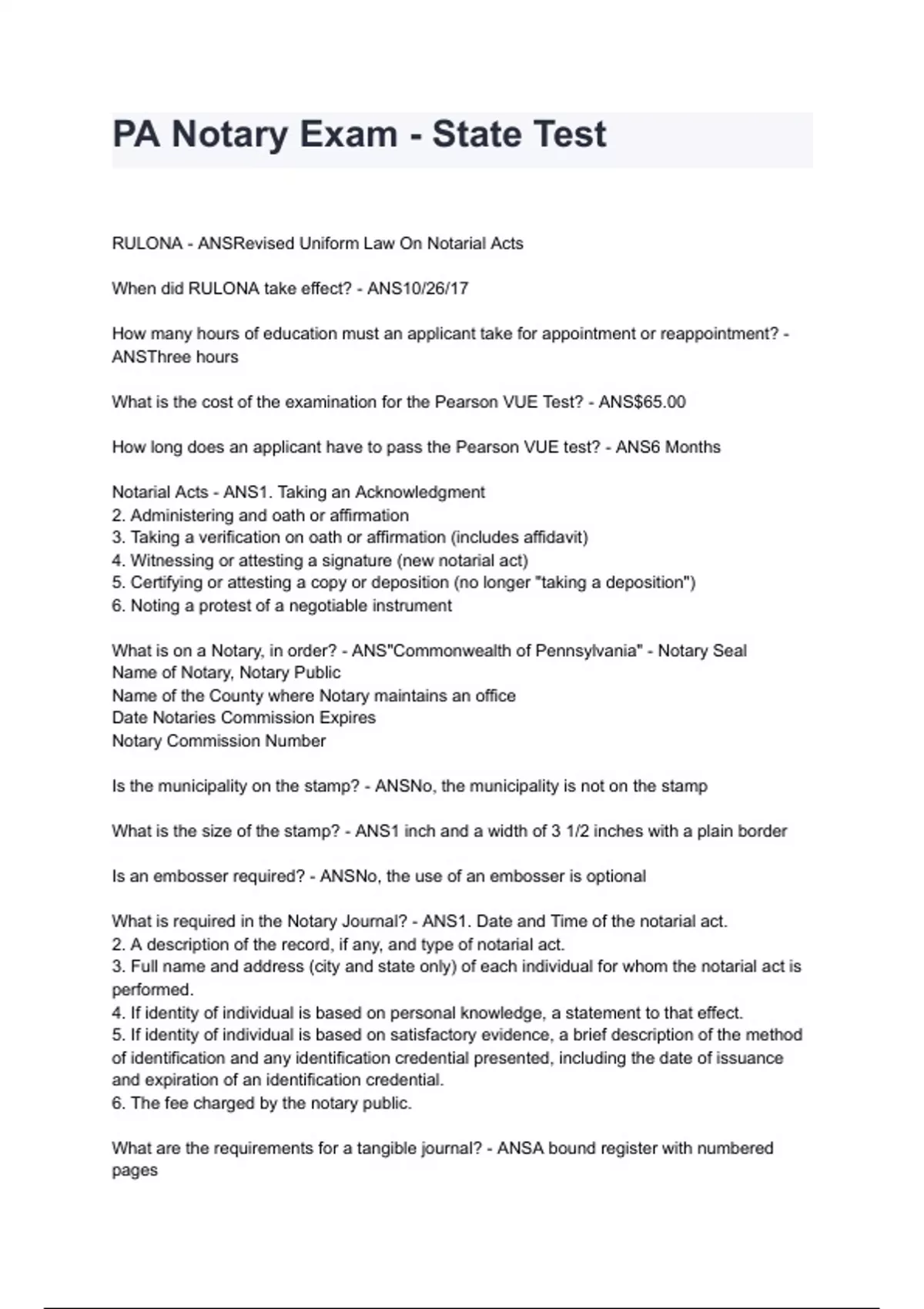 PA Notary Exam - State Test 2024/2025 graded A+