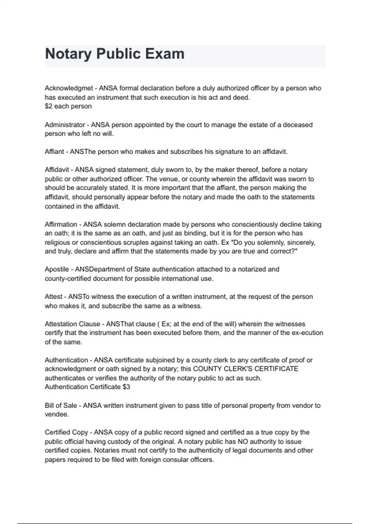 Notary Public Exam 2024/2025 graded A+