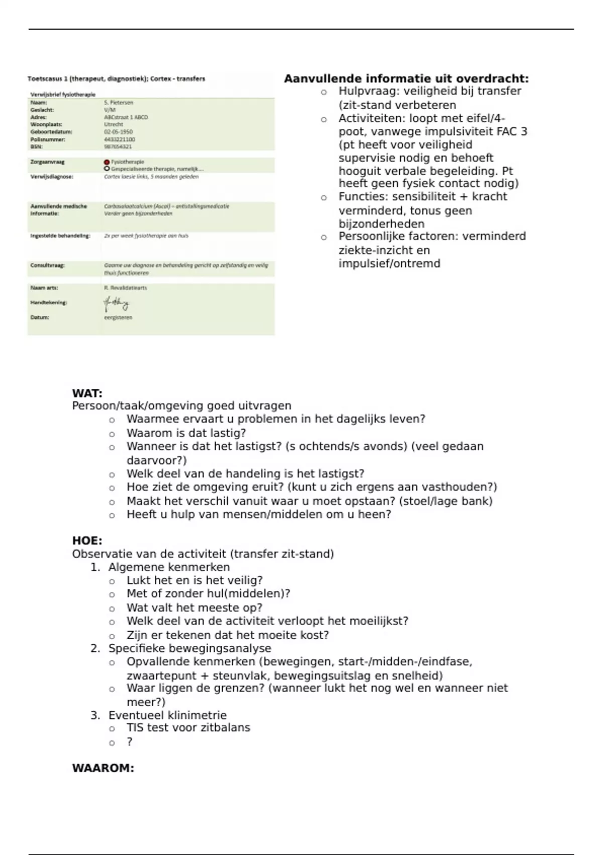 Aanvullende informatie uit overdracht: