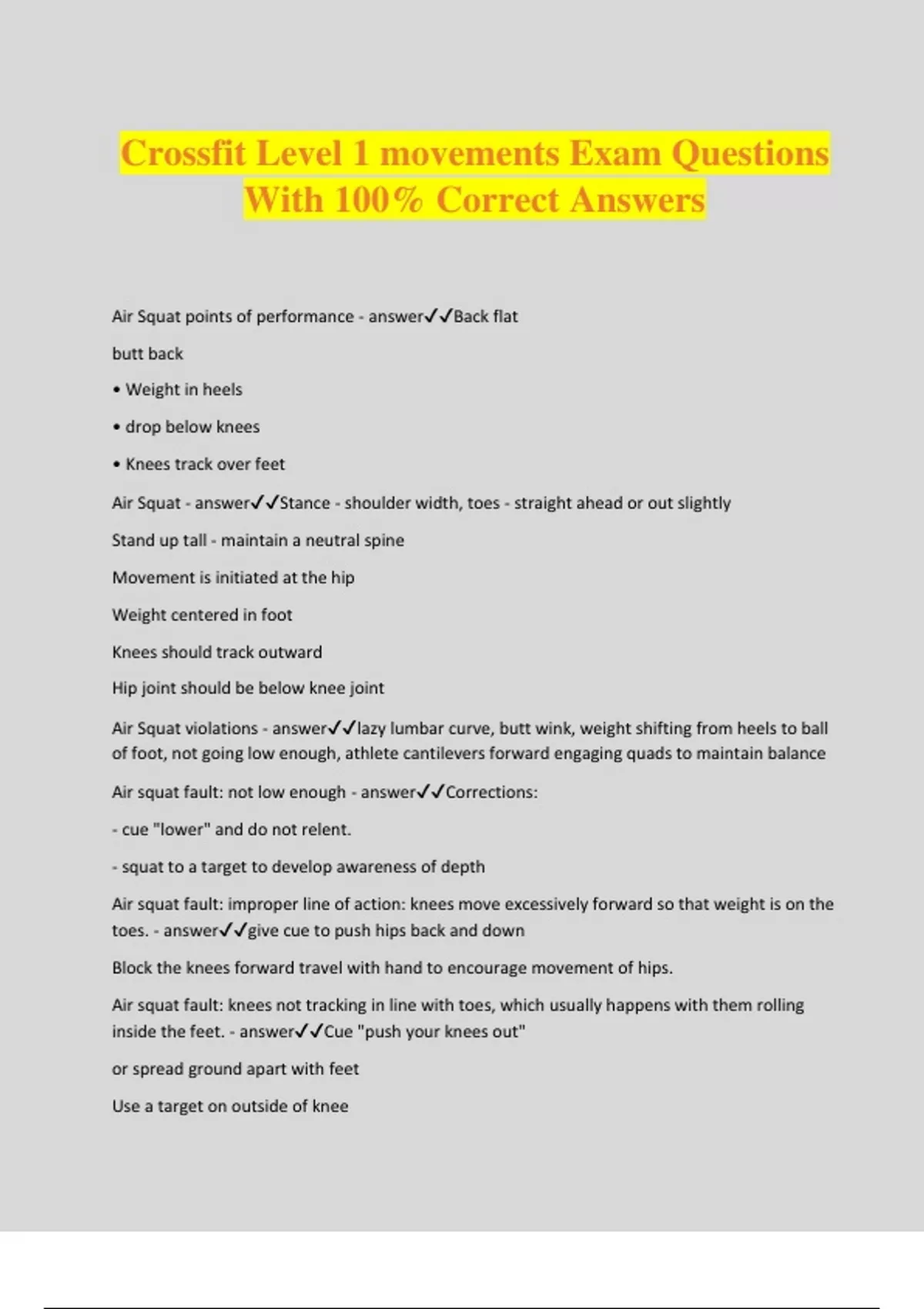 Crossfit Level 1 movements Exam Questions With 100% Correct Answers
