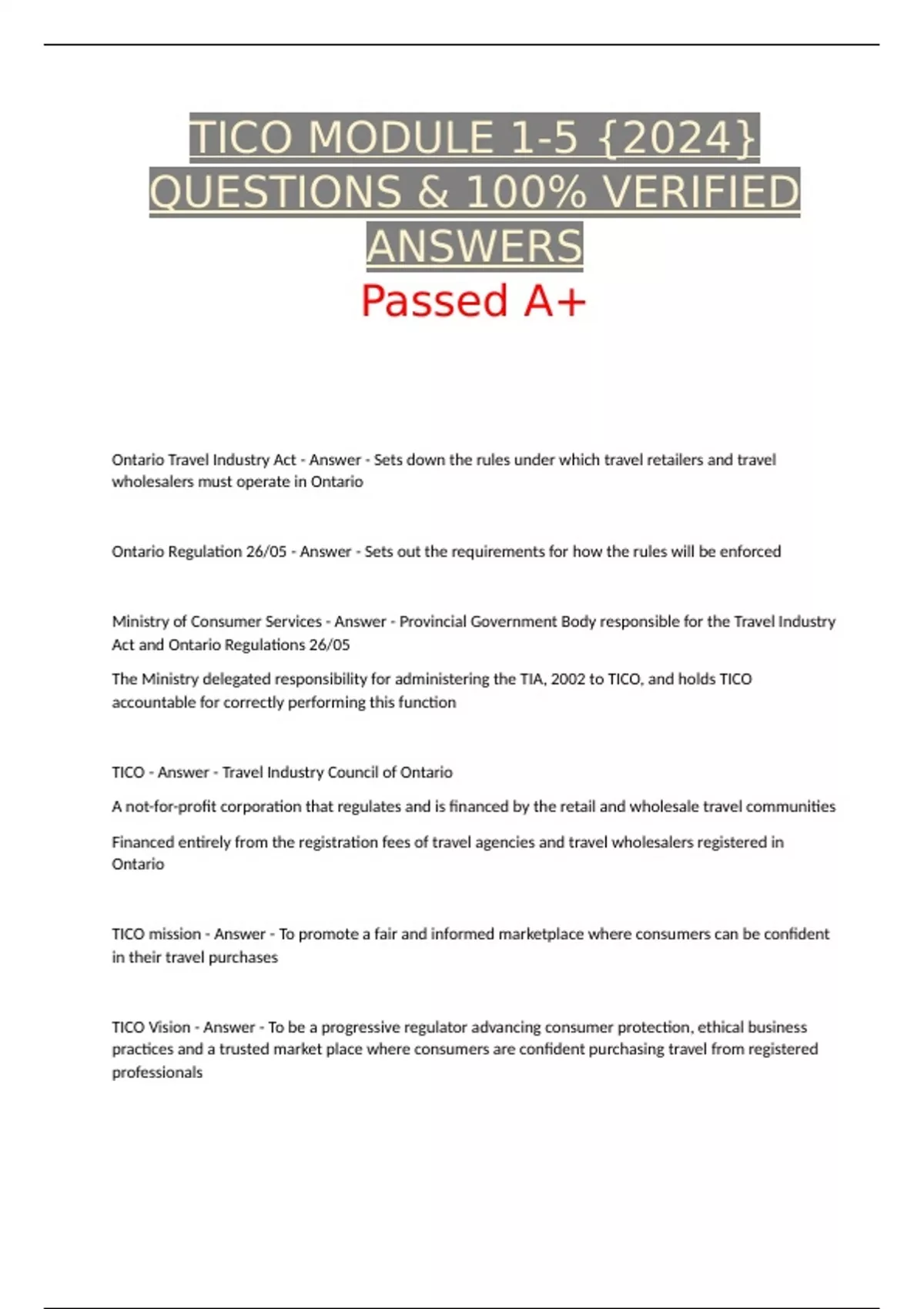 TICO MODULE 1-5 {2024} QUESTIONS & 100% VERIFIED ANSWERS Passed A+